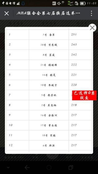 现将微信投票选举结果(截图)进行公示: