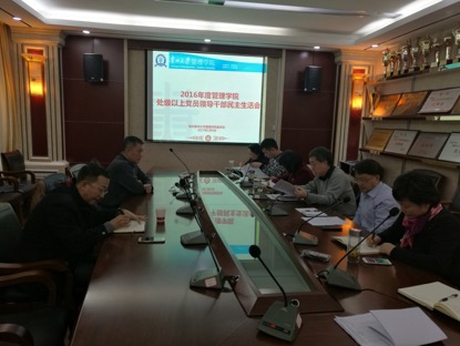 管理学院党委书记陶玉顺同志就其履行党建责任向与会人员做述职报告,主要从思想建设、组织建设、队伍建设、制度建设、反腐倡廉建设等五个方面阐述2016年管理学院万象城网页版,并提出下一步党建目标是:进一步加强学习,认真学习贯彻习近平同志在中央政治局民主生活会的讲话精神:要当“政治上的明白人”,以党的基本路线为根本遵循,对党忠诚必须纯粹,继续坚持民主集中制,做到敬畏,遵守纪律和规矩,带头崇尚实干,抓落实,提高廉洁纪律意识,自觉诚恳接受监督,为学校和学院工作做出贡献。
