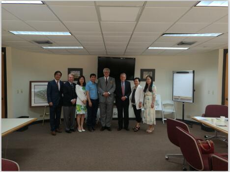 凯泽大学学术副校长John E.Sites、国际事务副校长杨湛君、旗舰校区负责人Gary B.VonkMBA项目负责人Micheal Olsher、Yan Luo-Beitler等交流与合影留念