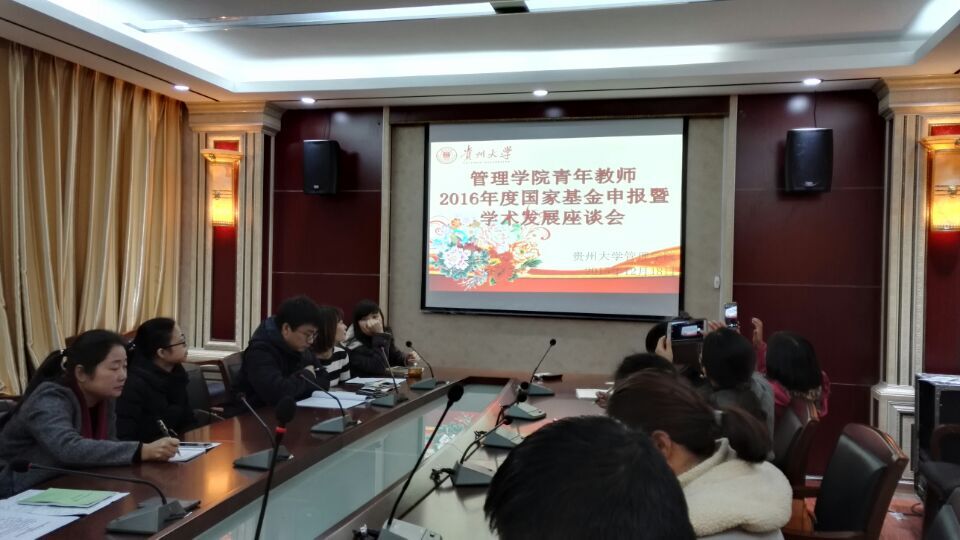 2015年12月18日中午1时,我院在学院一楼案例室召开国家资金申报暨学术发展座谈会,我院10余位青年教师与会,共同探讨2016年度国家基金申报暨学术发展,座谈会由王成军副院长主持,李烨院长到会指导。