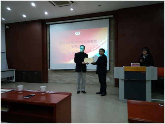 2017年11月20日14:30,由哲学社会科学研究院主办、管理学院承办的贵州大学人文社会科学学术讲座第61期文科讲坛在管理学院302报告厅开讲。美国哥伦比亚大学博士、美国蒙特克莱尔州立大学工商管理学院信息系统管理及商业分析学终身教授、美国纽约华尔街信息战略发展论坛专题演讲人邢陆宾受邀担任主讲嘉宾。报告会由管理学院副院长王婷教授主持,讲座前聘请邢陆宾教授成为万象城网页版客座教授,由管理学院院长李烨教授颁发了聘书。