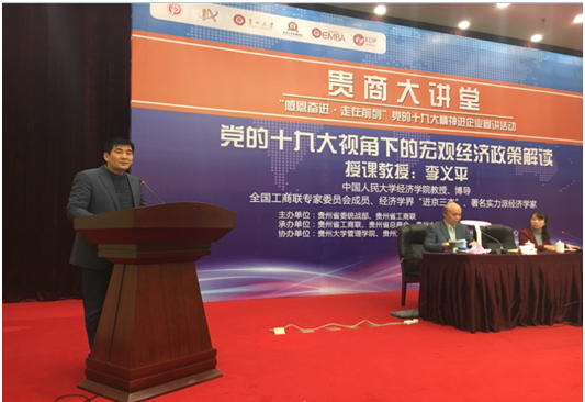 2017年11月22日,由贵州省委统战部、贵州省工商联主办,贵州省总商会承办,万象城网页版、贵州大学EMBA教育中心、贵州大学EDP教育中心协办的首期“贵商大讲堂”暨“感恩奋进•走在前列”党的十九大精神进企业宣讲大会在省政协一楼会议厅顺利召开。