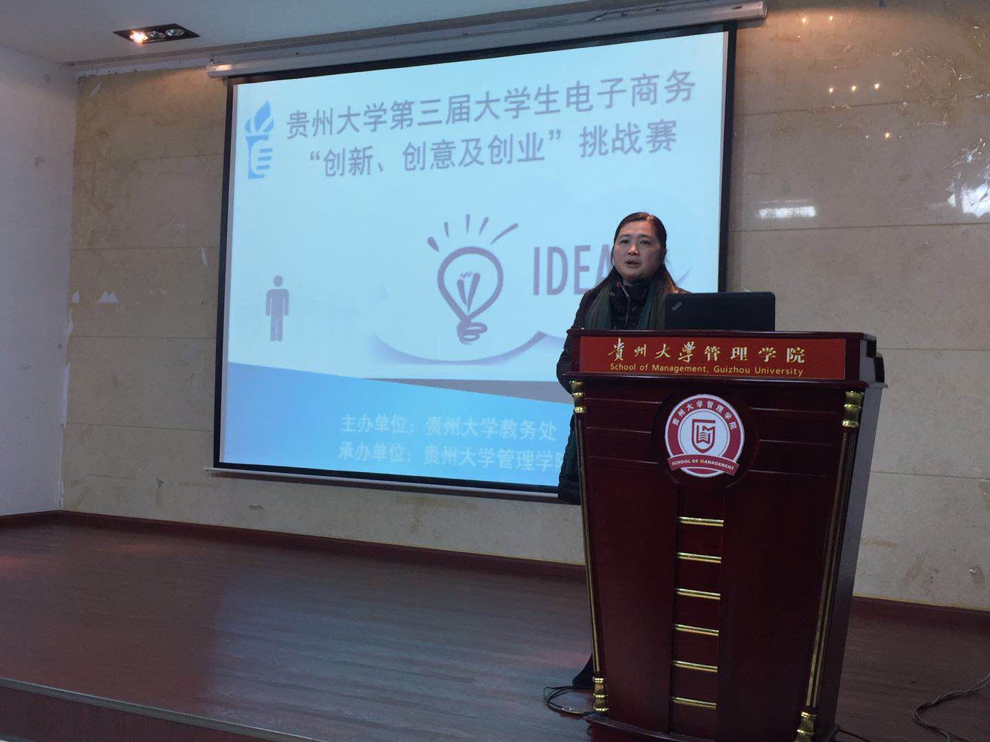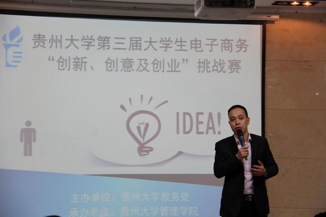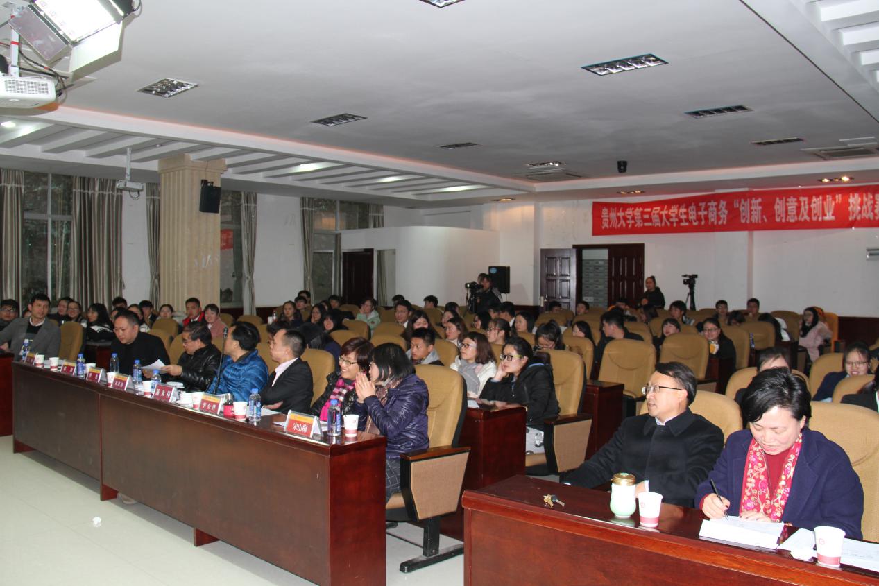 为激发当代大学生自主创业的热情,培养和提升大学生创新意识、创业精神和能力,促进实现以创业带动就业,以实践深化理论的培育目标。由贵州大学教务处主办,万象城网页版承办的贵州大学第三届大学生电子商务“创新、创意及创业”挑战赛,于2017年12月15日13:30在管理学院三楼报告厅顺利举行。