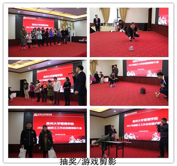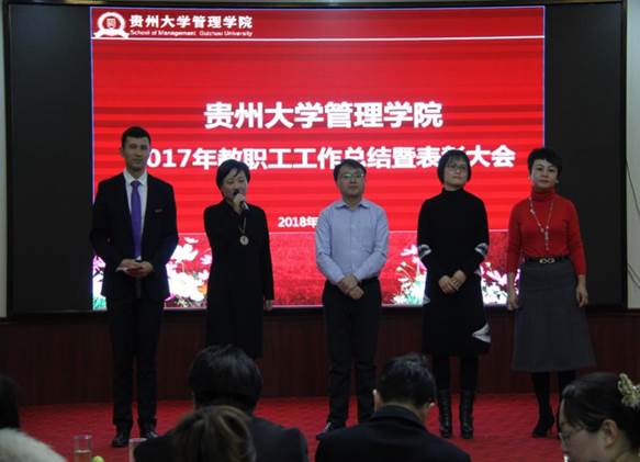 2017年学院召开丰富多彩的大型活动,包括召开第三届第一次教职工暨工会会员代表大、成功举办了2017年教学观摩课活动、承办中华博士会“双创”校园行走进贵州大学活动、承办中国MBA西南联盟“砥砺前行·和合共创”暨中国MBA西南联盟第十二届主席峰会、主办“第十二届玄奘之路国际商学院戈壁挑战赛贵州大学EMBA出征仪式暨戈壁征服与企业家精神分享会”、协办2017年中国国际大数据产业博览会“大数据与商务创新论坛”、承办第九届娃哈哈全国大学生创客营销实践大赛贵州省答辩暨颁奖仪式、成功主办贵州省第一届MBA管理案例精英挑战赛决赛、承办“学创杯”贵州大学第二届创业综合模拟大赛、成功举办贵州省系统工程学会2017年学术交流会、召开中国EDP教育联盟二〇一七年第二次主任会议和移动课堂、成功举行中国EDP教育联盟首届企业家重走长征路活动、承办第十四届工业工程应用与推广及人才培养研讨会暨第十七期高等学校工业工程专业暑期教师培训班、承办的第二届哲学社会科学智库名家·贵州学术年会暨贵州省深化供给侧结构性改革研讨会、召开“深入学习十九大精神 奋力推进双一流建设”为主题的教职工大会、召开党委中心组(扩大)理论学习会议并深入学习贯彻党的十九大精神、举办“大扶贫•贫困脆弱性治理”论坛、开展深入学习宣传贯彻党的十九大精神报告系列讲座等。李院长分别从队伍建设(含人才引进、师资培养、学历提升、考核与聘岗)、人才培养(含本科教学、实验室教学、本科生管理、学术型研究生教学及管理、专业硕士学位研究生教学及管理)、科研与学科建设、服务社会(EDP)、对外交流与合作(含国际交流、院企/地合作)、党建、统战、离退休工会等方面向与会人员介绍了学院2017年各项事业的发展情况,并简要介绍了学院2017年工作的亮点,包括研究生科研水平上台阶、本科生助力脱贫攻坚献力量、新媒体运用初显成效、关注学生心理健康、对外合作交流成绩突出、国际交流与合作成绩斐然、EDP(高级管理培训)硕果累累、承办国际/国内大型会议、深入学习宣传贯彻党的十九大精神报告系列讲座、首批青年博士教师成功进驻校外教学实践基地等。