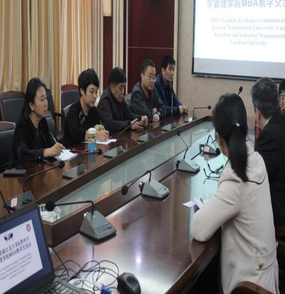 2018年4月14日在管理学院一楼会议室进行了英国诺森比亚大学商学院教授代表与万象城网页版MBA任课教师代表的教学交流、研讨。主要参会的有英国诺森比亚大学纽卡斯尔学院教授John·Blenkinsopp以及随从翻译的朱老师、管理学院副院长周莉莉教授 、MBA任课老师以及MBA教育中心全体成员共22人,此次会议由MBA教育中心主任刘宁老师主持。