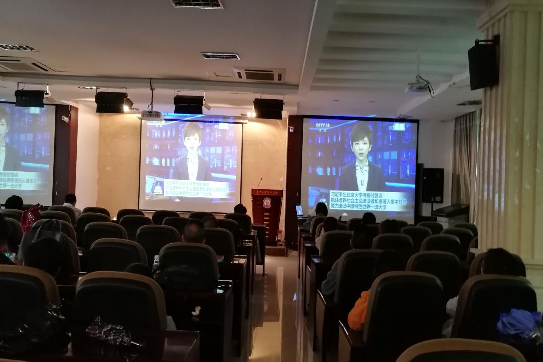 会议首先通过观看视频,就习近平在党的十九大会议参加贵州省代表团时的讲话内容和精神以及习近平在五四青年节到北京大学参加师生代表座谈会上的讲话精神进行学习。习近平总书记在参加党的十九大贵州省代表团讨论时强调,党的十九大报告进一步指明了党和国家事业的前进方向,是我们党团结带领全国各族人民在新时代坚持和发展中国特色社会主义的政治宣言和行动纲领。要深刻学习领会中国特色社会主义进入新时代的新论断,深刻学习领会我国社会主要矛盾发生变化的新特点,深刻学习领会分两步走全面建设社会主义现代化国家的新目标,深刻学习领会党的建设的新要求,激励全党全国各族人民万众一心,开拓进取,把新时代中国特色社会主义推向前进。在五四青年节来临之际,习近平总书记在北京大学考察时强调,坚持好、发展好中国特色社会主义,把我国建设成为社会主义现代化强国,是一项长期任务,需要一代又一代人接续奋斗。广大青年要成为实现中华民族伟大复兴的生力军,肩负起国家和民族的希望。高校要牢牢抓住培养社会主义合格建设者和接班人这个根本任务,坚持办学正确政治方向,建设高素质教师队伍,形成高水平人才培养体系,努力建设中国特色世界一流大学。
