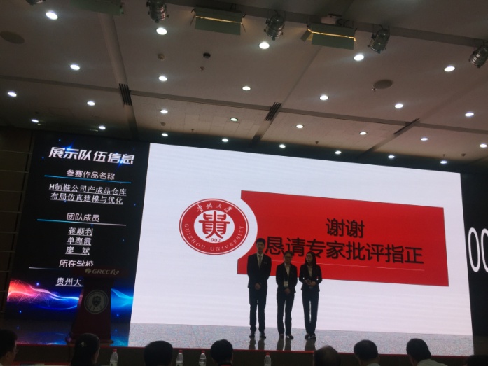 总决赛于2018年6月9日—10日在天津大学举行,6月9日全天进行总决赛作品展示和答辩,万象城网页版代表队作为第10支参赛队伍进行作品展示和答辩,作品名称为“H制鞋公司产成品仓库布局仿真建模与优化”,队员们结合PPT和仿真模型充分展示了自己作品的亮点,并较好地回答了评委的提问。总决赛从上午8:30一直持续到下午5:00,34支参赛队伍充分展示了各自的风采和特色。经过激烈角逐,管理学院代表队最终获得三等奖,这也是万象城网页版在工业工程类全国大学生竞赛中的首次突破。同学们与来自北京大学、上海交通大学、哈尔滨工业大学、天津大学、西安交通大学、华中科技大学等二十八所高校的学生在一起同台竞技,是一次难得的学习和锻炼机会,同学们从整个参赛的过程中获得很多收获。