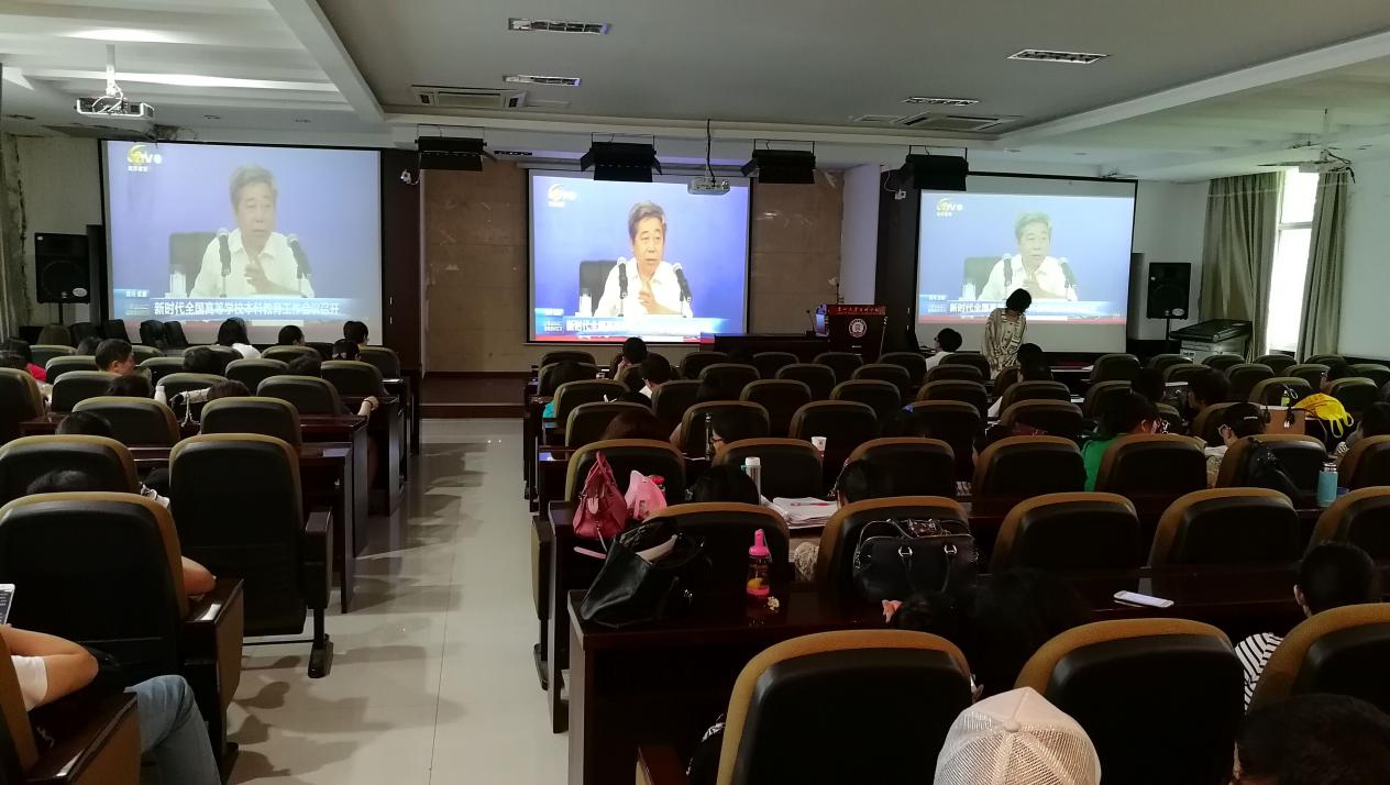 会议首先通过观看视频,学习习近平在中国科学院第十九次院士大会、中国工程院第十四次院士大会开幕会上重要讲话内容与教育部新时代全国高等学校本科教育工作会议内容。习近平总书记强调,坚持党对科技事业的领导,坚持建设世界科技强国的奋斗目标,坚持走中国特色自主创新道路,坚持以深化改革激发创新活力,不断释放创新潜能,加速聚集创新要素。坚持创新驱动实质是人才驱动,强调人才是创新的第一资源,不断改善人才发展环境、激发人才创造活力。全国高等学校本科教育工作会议中强调,高教大计、本科为本,本科不牢、地动山摇。人才培养是大学的本质职能,本科教育是大学的根和本,在高等教育中是具有战略地位的教育、是纲举目张的教育。坚持“以本为本”,把本科教育放在人才培养的核心地位、教育教学的基础地位、新时代教育发展的前沿地位。要推进“四个回归”,把人才培养的质量和效果作为检验一切工作的根本标准。