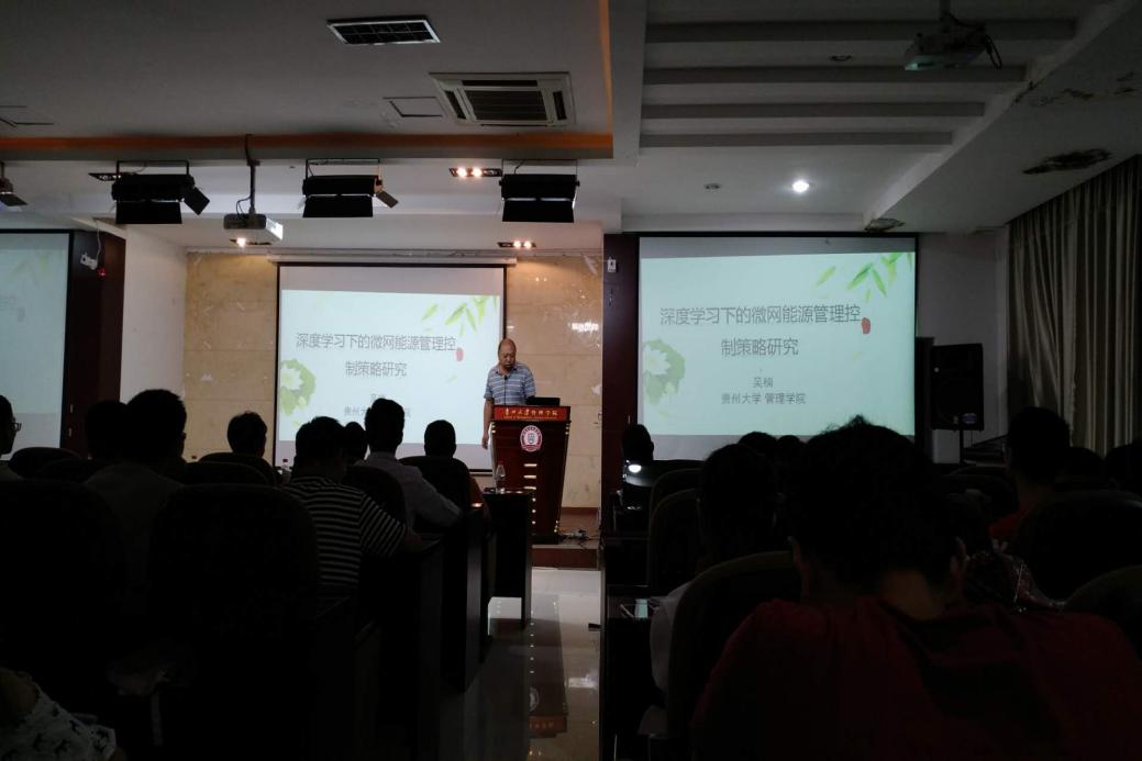 第二位报告人是管理学院博士研究生吴楠,报告主题为“深度学习下的微电网能源管理控制策略研究”,主要报告了深度学习及其应用、微电网的特性、深度学习下的微电网能源管理策略以及部分研究成果。