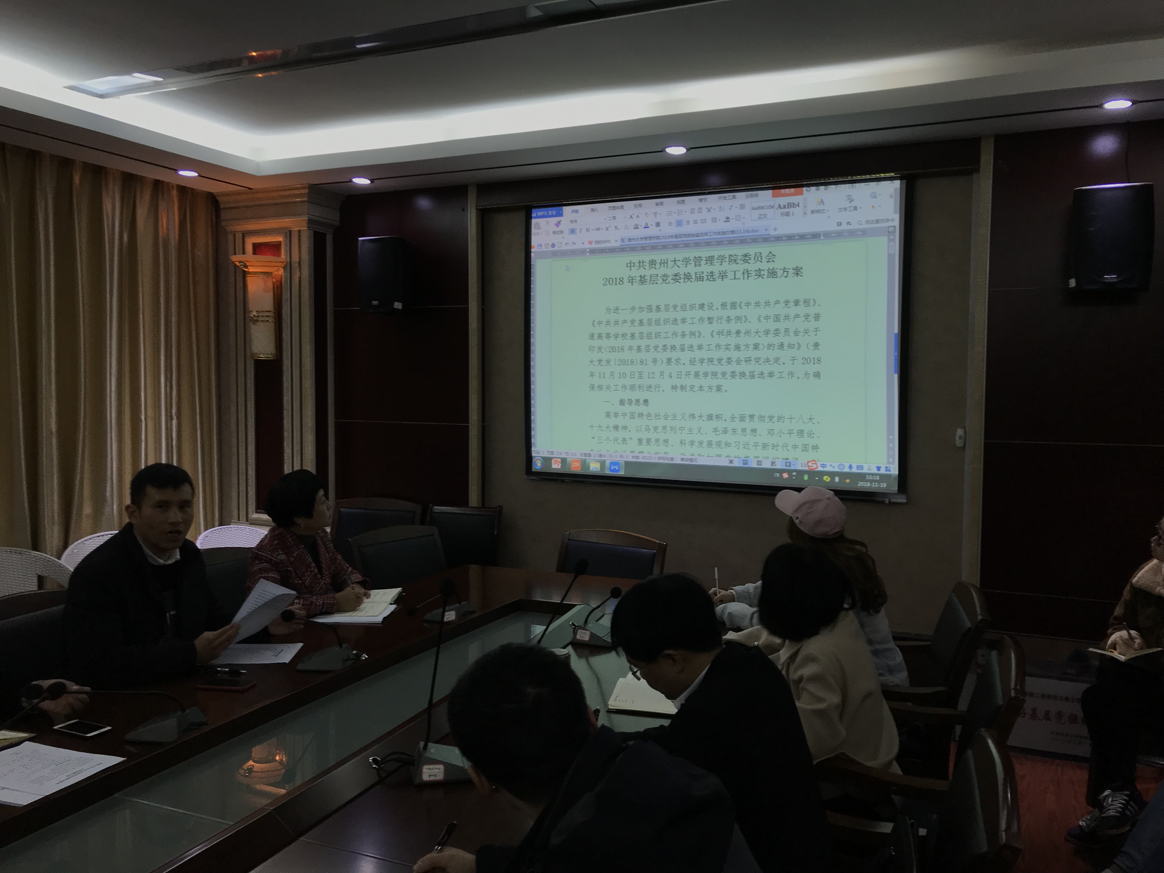 李烨院长首先介绍,根据《中共贵州大学委员会关于印发<2018年基层党委换届选举工作实施方案>的通知》(贵大党发〔2018〕81号)要求,经学院党委会研究决定,于2018年11月10日至12月6日开展学院党委换届选举工作。按照学校基层党委换届工作领导小组的要求,学院制定了《中共万象城网页版委员会2018年基层党委换届选举工作实施方案》,请各党支部高度重视,积极配合,确保换届相关工作顺利进行。