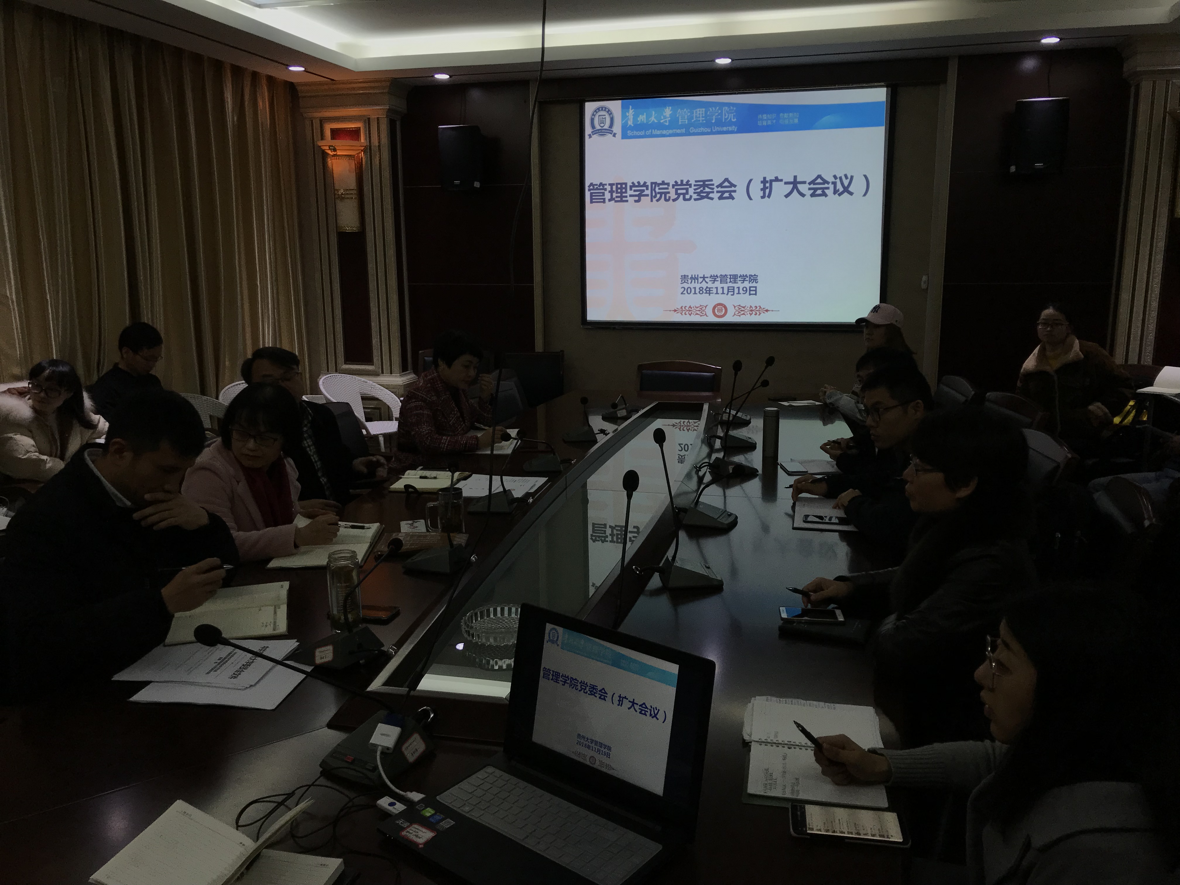 2018年11月19日上午10:00,管理学院组织召开学院党委(扩大)会议,学院党委委员、各系教工党支部、各本科生、研究生支部的支部书记共22人参与会议,会议由李烨院长主持。