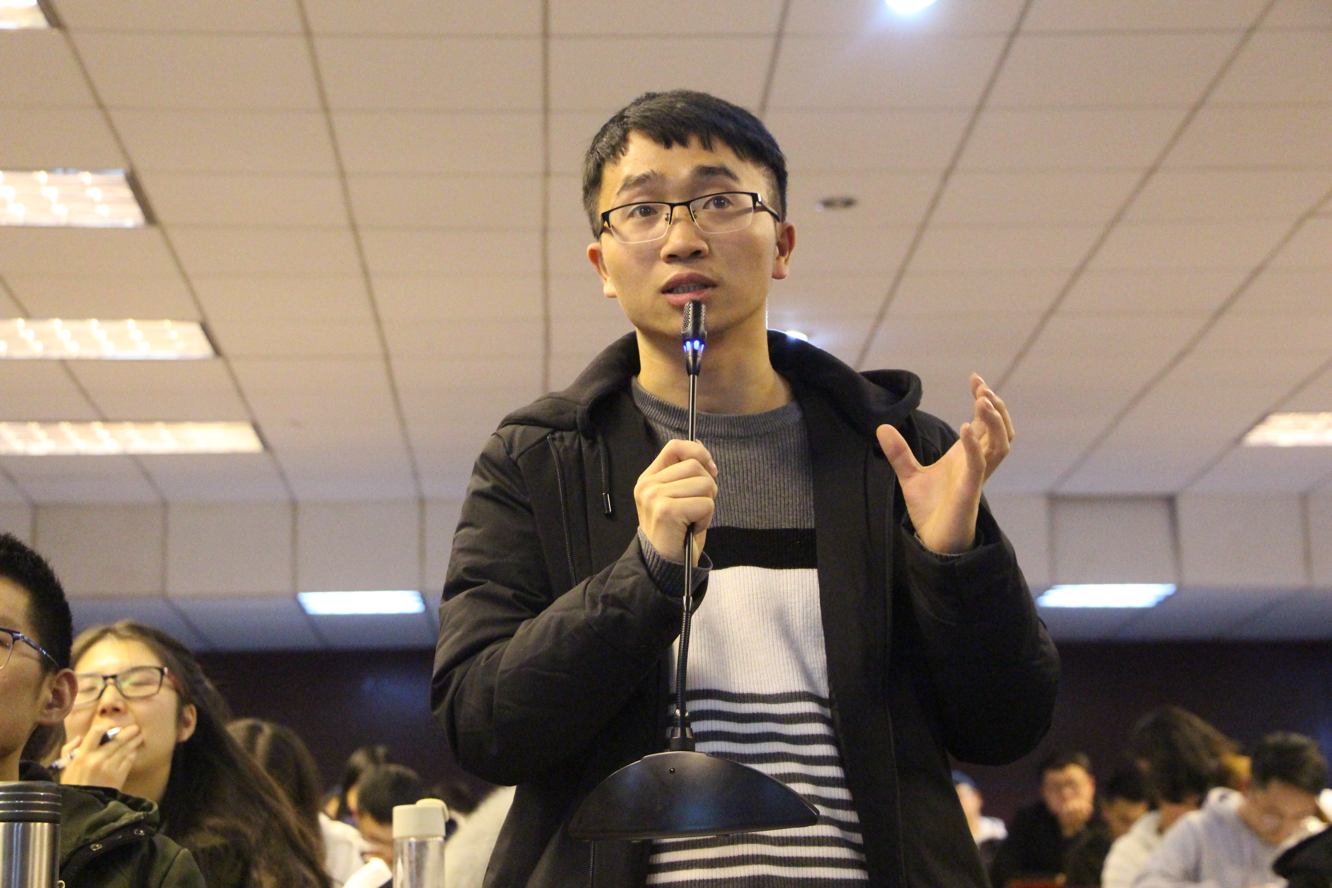 令狐书记给同学们分享了自己工作以后的成长历程,以习近平总书记对青年的寄语为切入点,强调青年人要找苦吃,要努力学习,勇于担当使命与责任,树立正确的世界观、人生观和价值观,希望入党积极分子们关注央视“平语近人”栏目,学习习近平新时代中国特色社会主义思想。紧接着,她提到最近热门的“重庆公交车”事件,并请法学院的同学发表看法,她说:“我之所以让法学院的同学来,就是想看看,学习法律的同学们对这件事的思考,不只是他们,更多的青年,都应该明法、知法、守法,共同维护国家的和谐与稳定。”