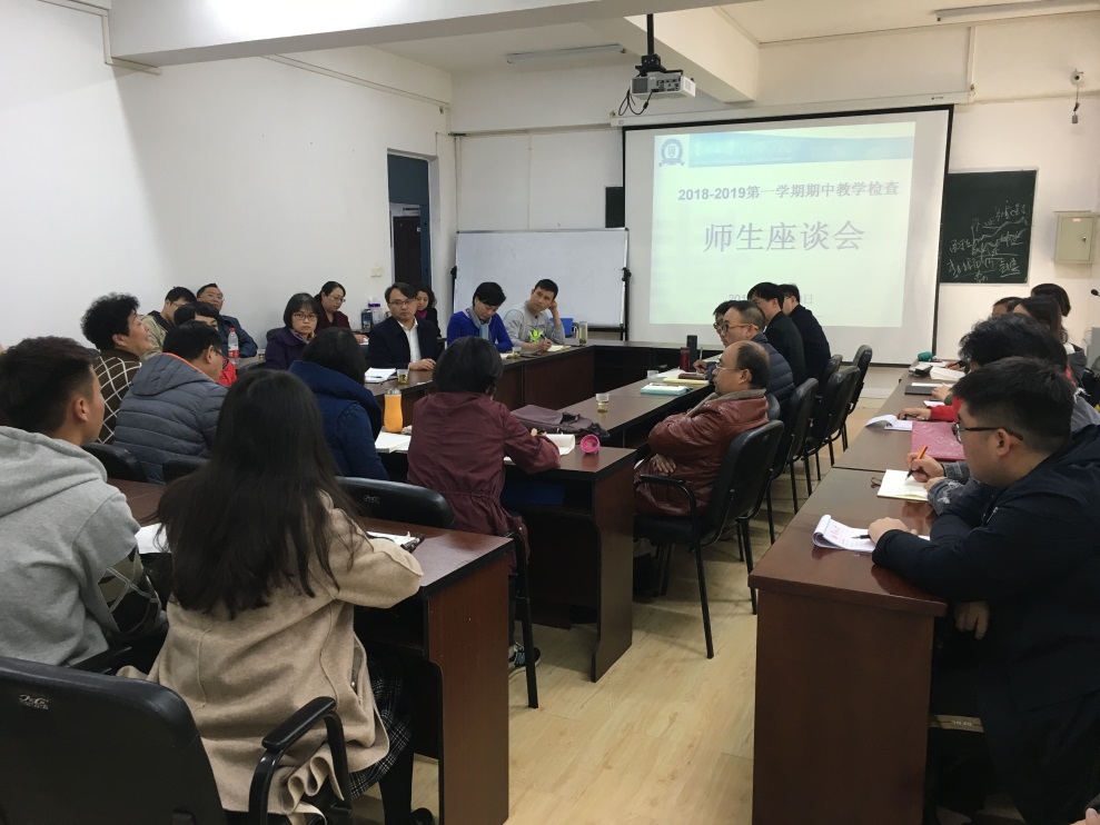 为全面了解教师教学和学生学习情况,听取学生意见、加深师生关系,提高教学质量,根据学院期中教学检查的工作安排,我院于11月29日中午1:00,在学院403教室召开期中教学检查师生座谈会。院长李烨,副院长王婷、周莉莉、宋山梅,院党委副书记张亚军出席会议,校督导团李景勃老师,学院督导组老师,各教研室主任、副主任、教师代表,教学科、学生科老师,及2015-2017级各班学生代表共40余人参加座谈会。会议由分管教学副院长宋山梅主持。