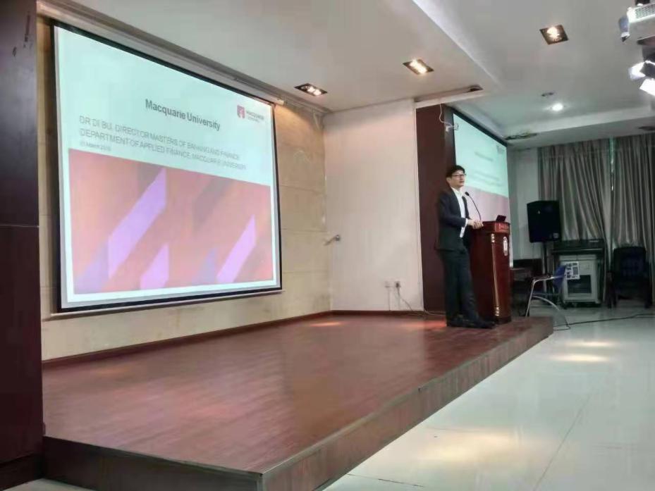 此外,部迪博士向同学们介绍了他所在的麦考瑞大学基本情况。麦考瑞大学位于澳大利亚新南威尔士州,是一所研究型综合大学,其高质量的教学和科研水准在国内外享有盛名,尤其是商科在澳洲十分出名。并且麦考瑞大学地理位置优越,位于澳大利亚一流的高科技园中心,紧挨着Lane Cove国家公园,环境优美,十分适宜生活与居住。也向同学们发出邀请,欢迎到他所在的研究所学习。