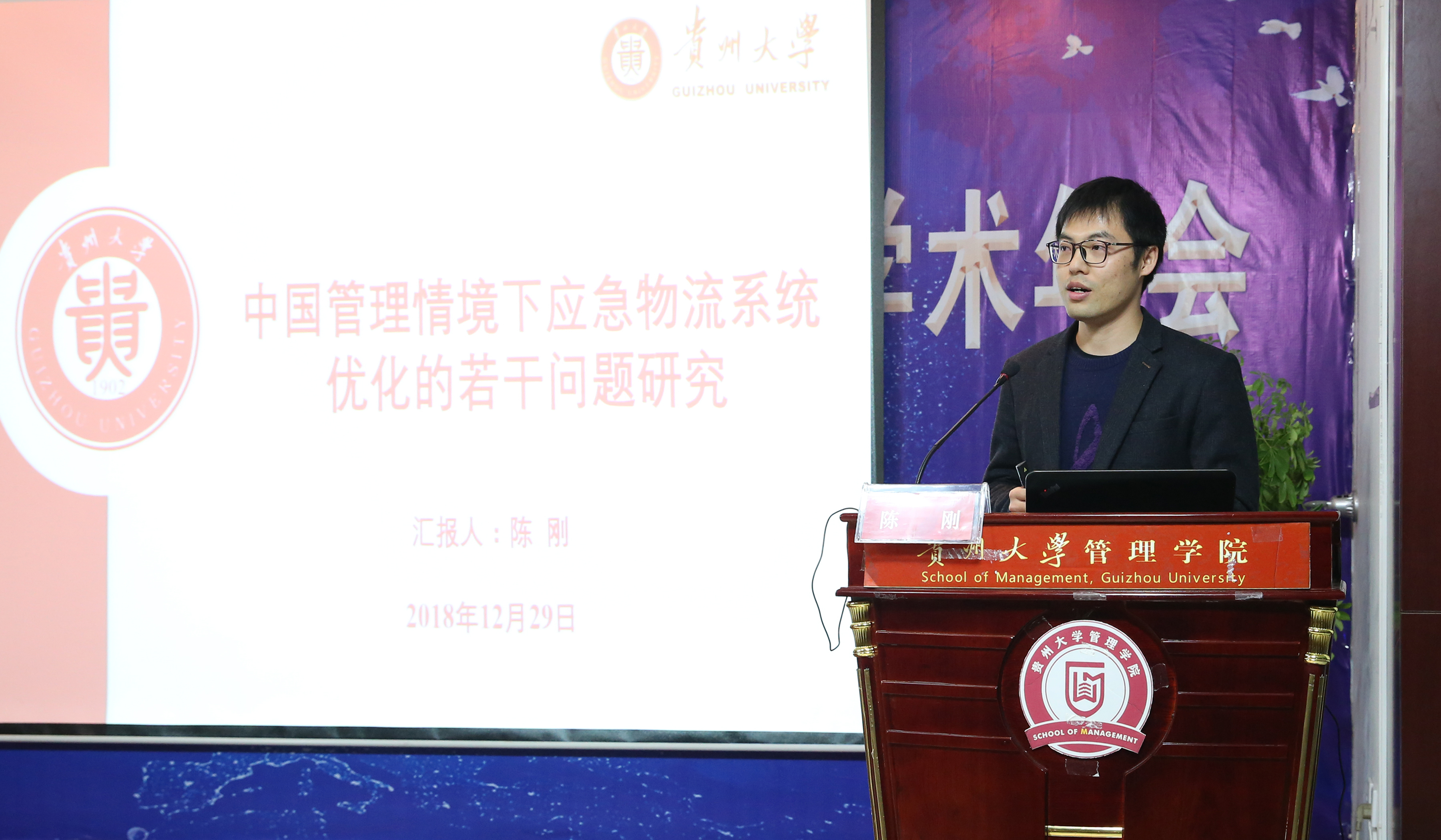 接着,来自贵州财经大学管理科学与工程专业的袁剑峰副教授作了题为孵化网络嵌入、创新行为与在孵化企业绩效关系研究的报告。袁剑锋副教授先是对目前孵化网络、创新行为及绩效关系的相关性研究进行了简要阐述,并针对目前存在的问题,提出了应构建孵化网络资源,提升商业中介能力等有效的建议。最后,我院副教授陈刚博士作了题为中国管理情境下应急物流系统优化的若干问题研究的主题报告,针对我国政府主导的应急物流管理类型,他认为可以从优化目标、不确定性、情景应对等方面进行更高水平更具意义的科学研究。