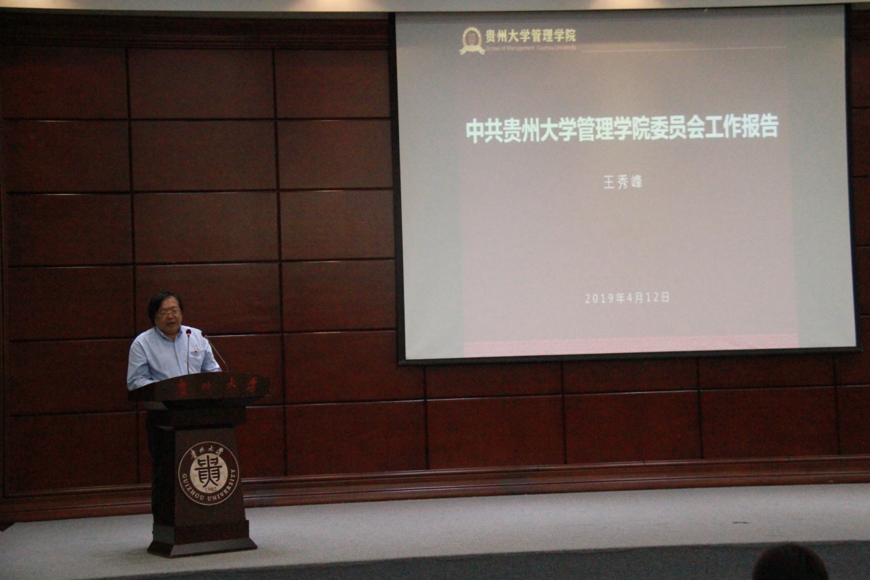 大会在庄严的国歌声中拉开帷幕,学院党委书记王秀峰同志以“凝心聚力谋发展,砥砺前行谱新章”为主题向全体党员作中国共产党万象城网页版委员会工作报告。王书记对管理学院过去五年的工作进行了全面系统的总结,从学科建设、科研成果、人才培养、人才引进、青年教师培养和国际化交流与合作等方面凝练了学院近五年学院工作亮点,同时从把握办学方向,发挥党组织的政治核心作用;突出立德树人,加强和改进思想政治工作;加强组织建设,切实推进学院万象城网页版重心下移;加强作风建设,努力营造风清气正良好氛围;加强文化引领,大力弘扬主旋律、凝聚正能量;加强引导服务,推进学院各项工作全面发展等方面安排部署学院今后五年的工作任务。