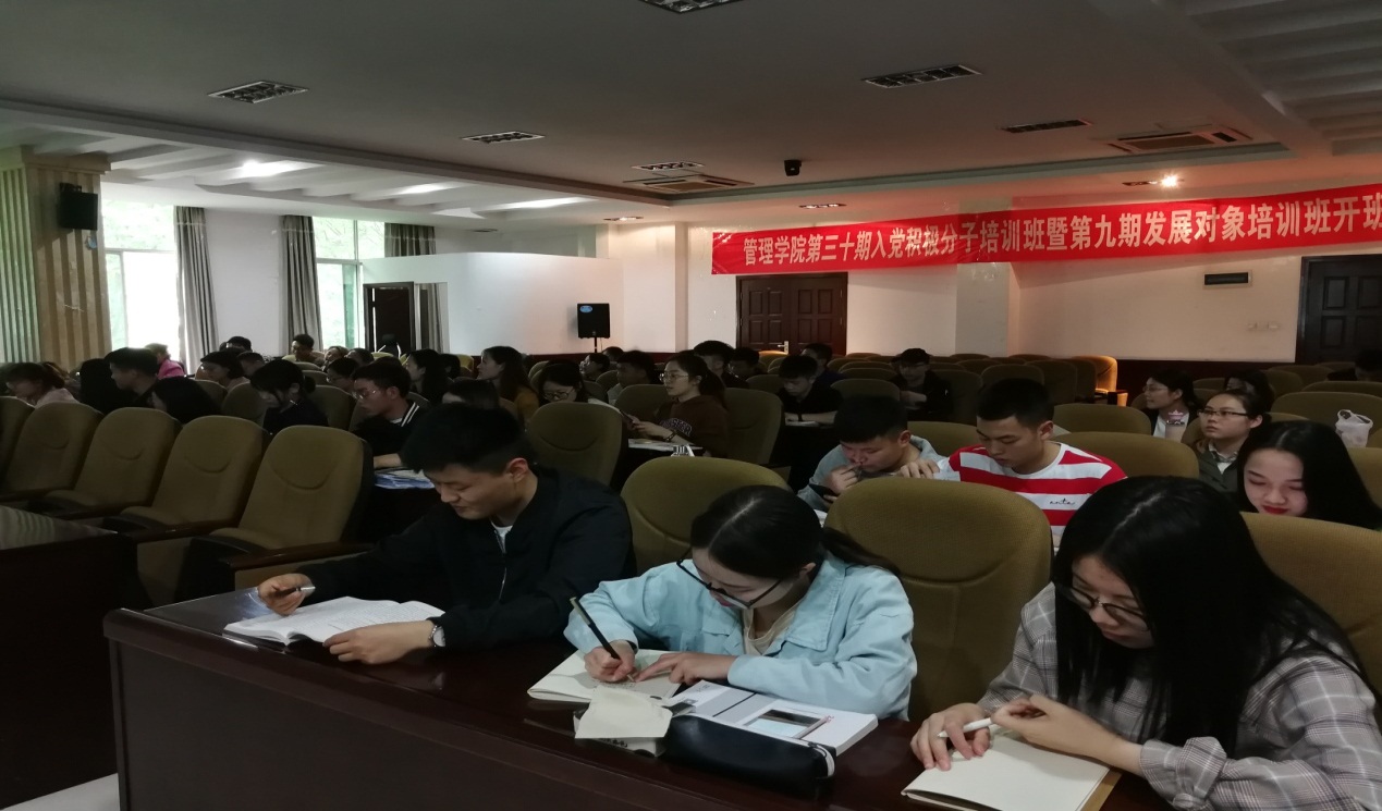 管理学院分党校于4月13上午9:00在学院三楼报告厅举行第30期入党积极分子暨第9期发展对象培训班开班典礼。管理学院党委书记王秀峰,副书记张亚军,专职组织员芮丽华老师、徐兰,培训班班主任陈芊羽以及第30期入党积极分子和第9期发展对象培训班全体学员参加开班典礼,开班典礼由陈芊羽老师主持。