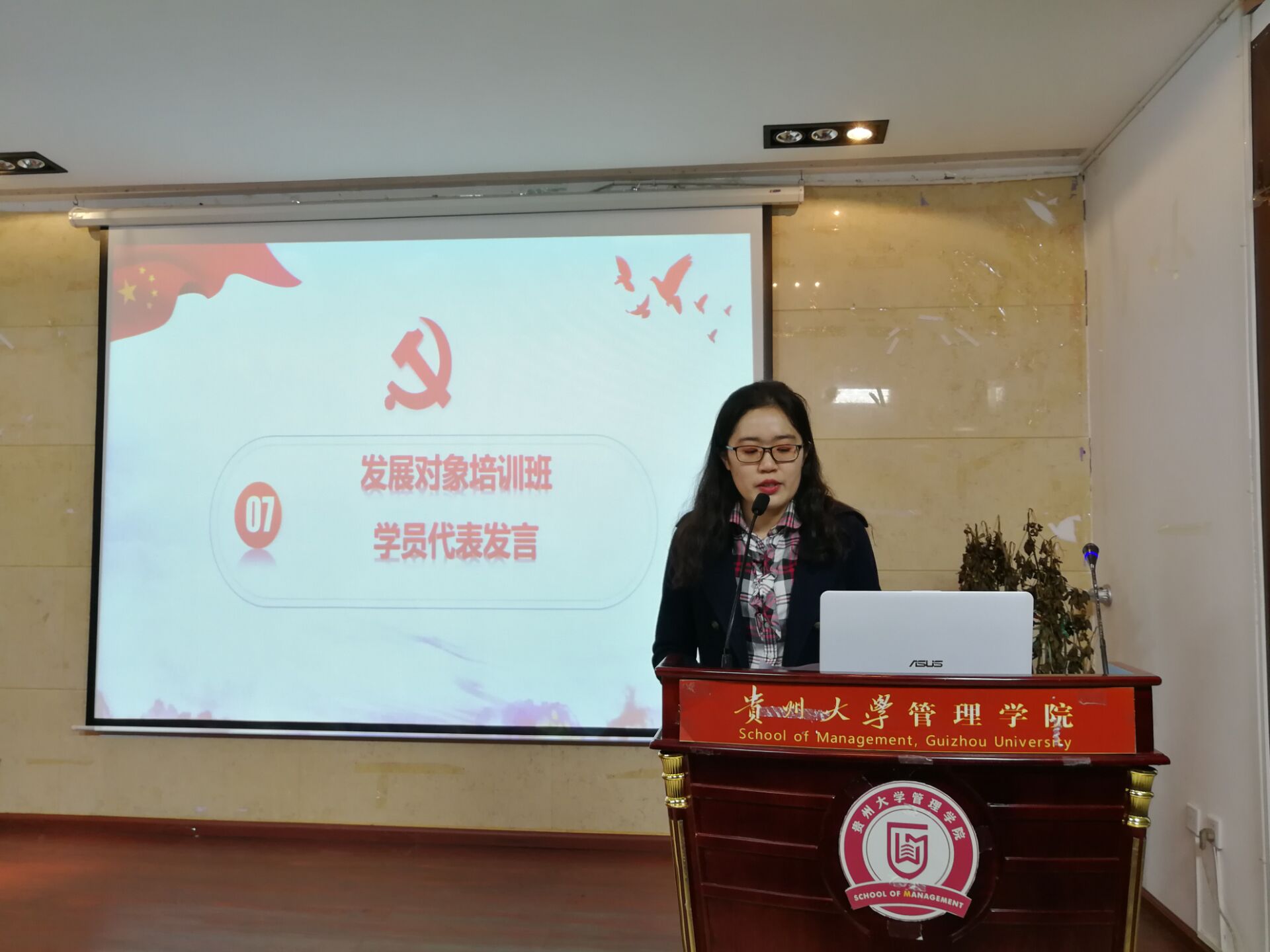 随后,入党积极分子培训班学员代表余明浩同学和发展对象培训班学员代表王馨悦同学分别发言,两位同学表示入党积极分子和发展对象都要以一名党员的标准严格要求自己,努力学习,言行一致,加强自身思想建设,主动承担社会历史责任,成为学生的榜样。