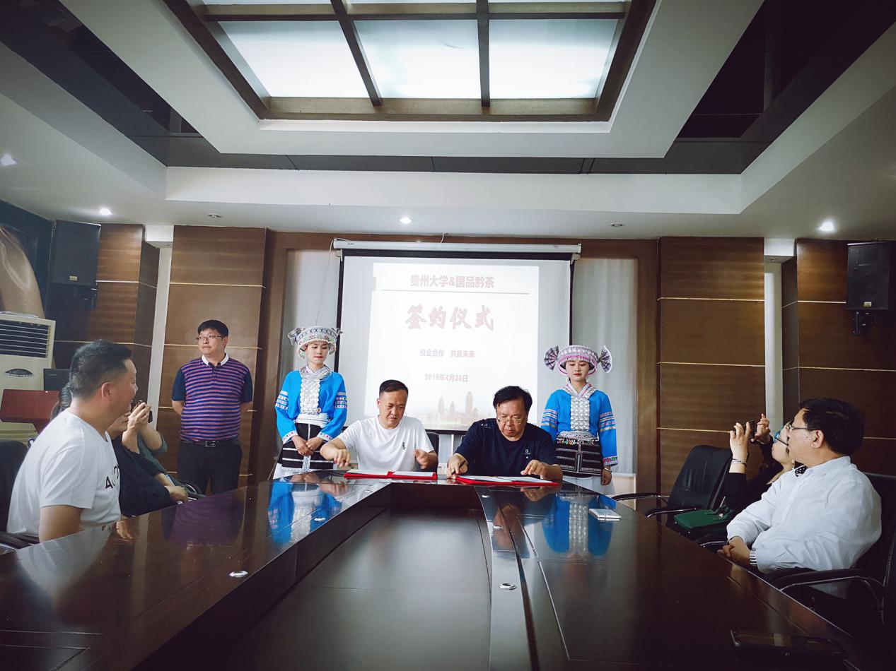 活动最后,万象城网页版与国品黔茶达成实践基地签约及授牌仪式,建立“贵州大学教学实习基地”。图为王秀峰书记、宋山梅副院长与汪健会长完成签约授牌仪式。
