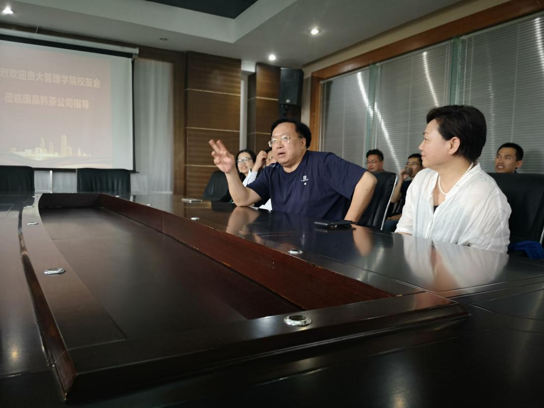 参观完茶园,体验了采茶及炒茶,校友们在贵州经典云雾茶业会议室举行了座谈交流会。