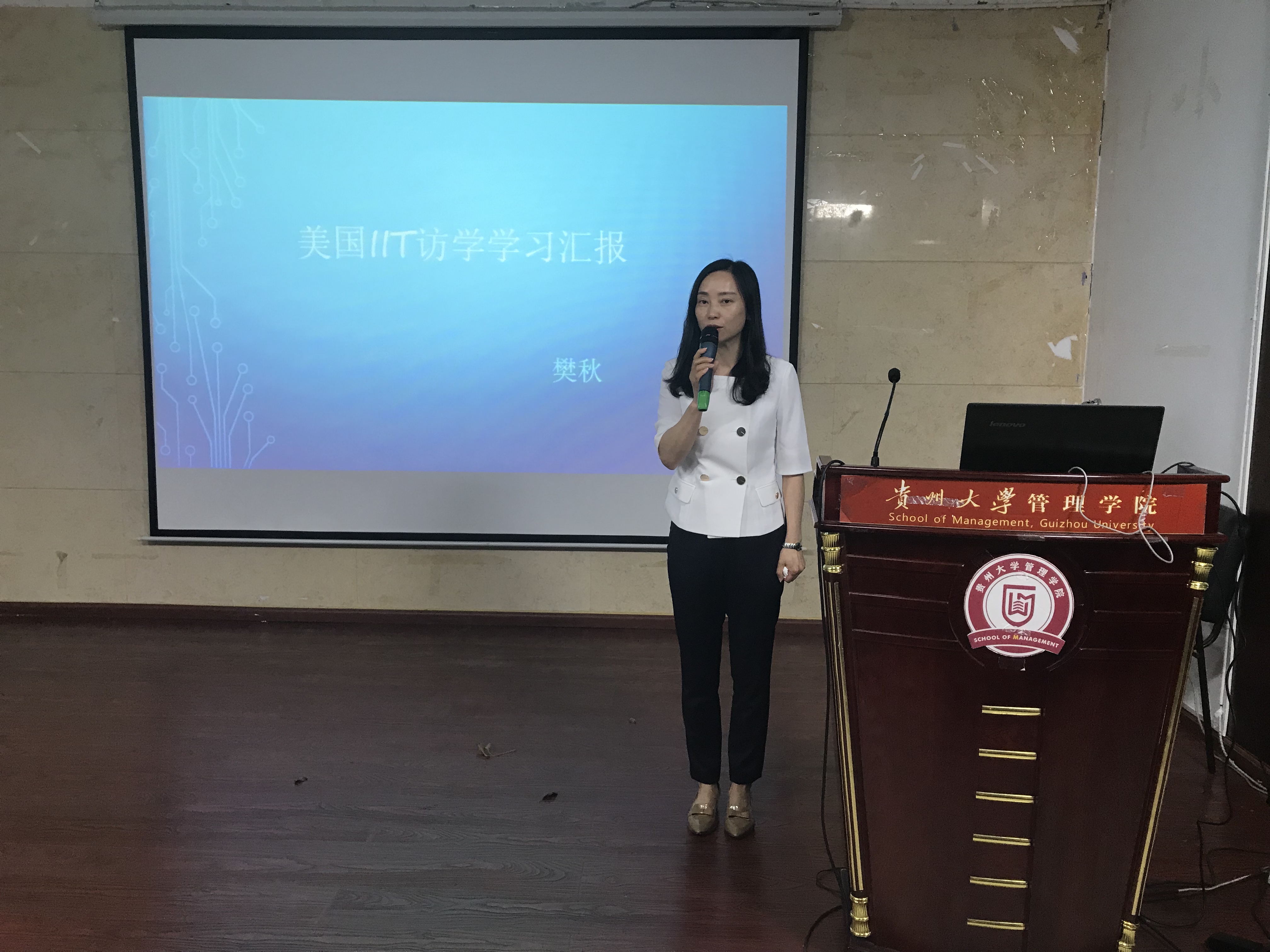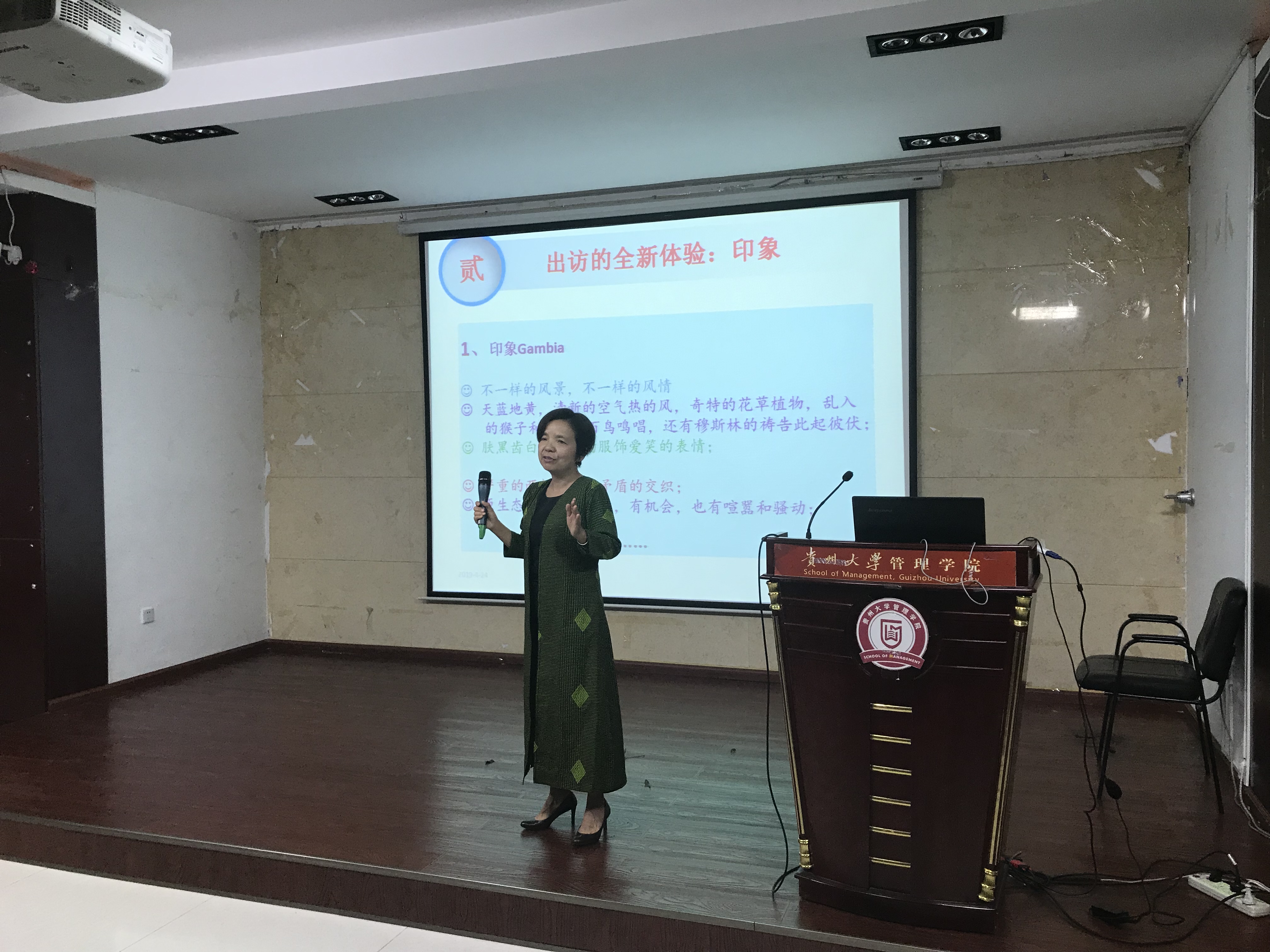 随后,学院2位老师就工作的完成情况在会上与各位老师进行交流。首先是李艳华老师的精彩分享,在“一带一路”的伟大倡议下,管理学院积极参与中非冈比亚孔子学院的共建工作,此行是学院国际化发展的破冰之旅,李老师作为亲历者和奉献者,将她在冈比亚大学一个多月的工作和生活情况、以及两校间的合作进展等做了汇报;樊秋老师将她在美国伊利诺伊大学的访学经历进行了分享,她认为不仅开拓了眼界,同时提升了自己的工作能力,并在教改思路和新课程开发上收获了一些心得,希望能尽快将访学成果转换,推进学院的工作开展;蔡兰老师针对近期学校财务系统调整,对老师的疑问以及学院应对问题的解决方案给参会老师进行了汇报。