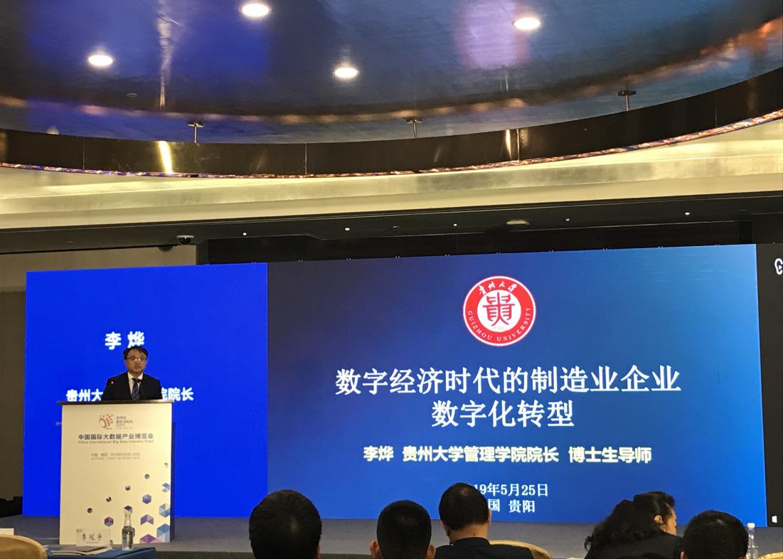 李烨院长做题为“数字经济时代的制造业企业数字化转型“的主旨演讲。李烨院长表示,人类在进入数字经济时代,数字经济在快速增长,一切皆可“数字化”。中国数字经济呈快速增长势态,2018年总量突破30万亿元,GDP占比超过三分之一。贵州是大数据产业发展的先行区,近年除了大数据中心相关基础设施推进建设,数据产业化和产业数据化同步快速推进,贵州数字经济连续三年增长速度在全国排在第一。在这样的背景下掀起了贵州企业改革变革创新的浪潮,很多本土企业都走上了数字化转型的道路。