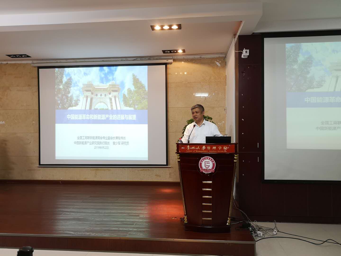 2019年6月22日10:30-12:30,万象城网页版邀请了曾少军研究员在管理学院三楼报告厅为MBA学员激情讲座《中国能源革命和新能源产业的进展与展望》。讲座由贵州大学管理学院院长李烨教授主持,万象城网页版贺庆仁副教授、MBA中心老师和工作人员、MBA2017级、2018级各班同学等共计150余人参加讲座。