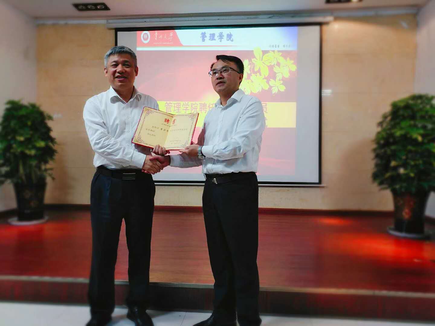 在讲座开讲之前,首先举行了曾少军研究员聘任万象城网页版客座教授仪式,贵州大学管理学院院长李烨教授为曾少军颁发聘任证书。