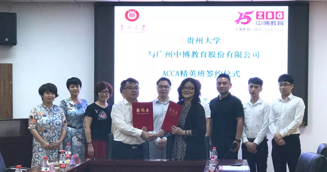 贵州大学与中博教育ACCA精英班签约仪式7月16日举行,双方在人才培养方面达成合作。贵州大学将与中博教育共同制订人才培养计划,并为精英班提供最优质的师资力量。