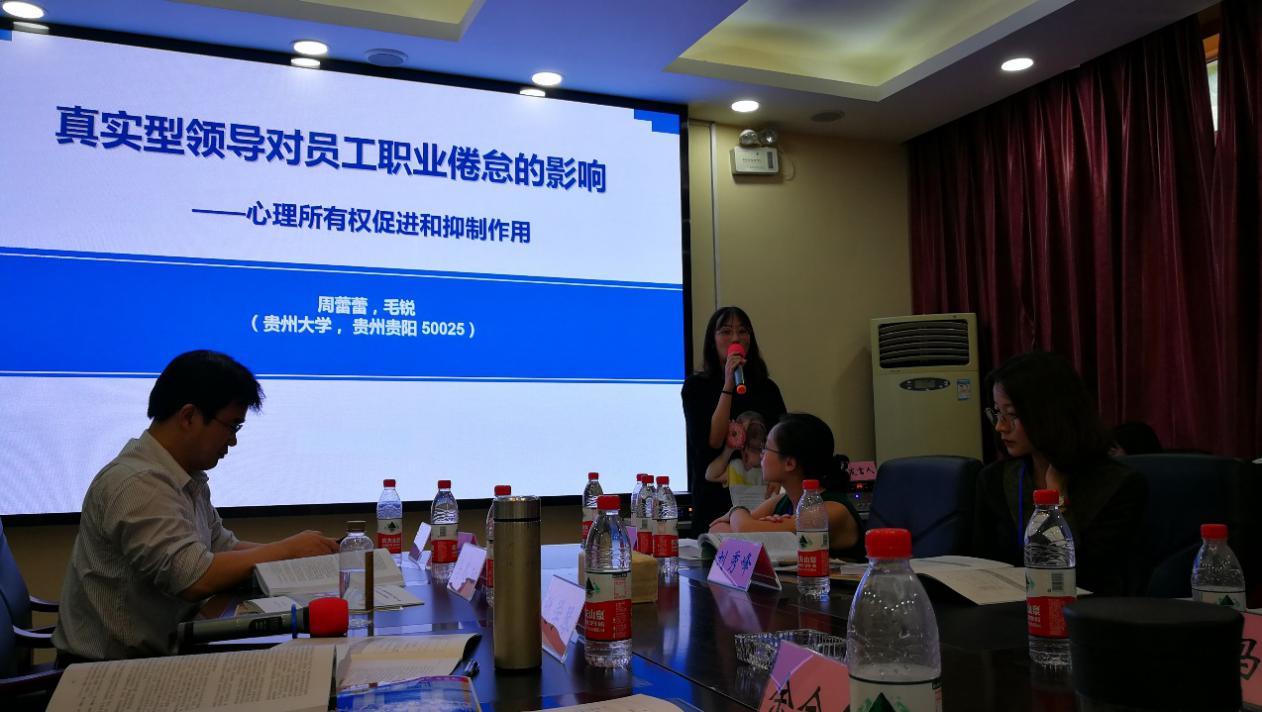 管理学院教师周蕾蕾副教授和研究生毛锐以《真实型领导对员工职业倦怠的影响——心理所有权促进和抑制作用》为主题,主要从心理所有权理论出发,探讨促进性心理所有权和防御性心理所有权在真实型领导与员工职业倦怠间的中介作用机制,对领导者如何降低企业员工的职业倦怠进行了详细分析。