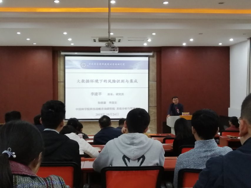 10月23号上午10点,管理学院承办学校第84期人文社科讲坛,邀请中国科学院特聘研究员李建平教授在管理学院一楼102报告厅做了题为“大数据环境下的风险识别与集成度量”的专题讲座。讲座由管理学院院长李烨教授主持,管院全体教职工及2018级和2019级全体研究生到场聆听。
