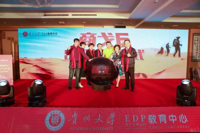 【由李烨院长、宋山梅副院长、张勇主任、王云老师、戴军会长、杨再英主席、牟道勇主席共同按下启动球,“商戈6”贵州大学战队正式启动】