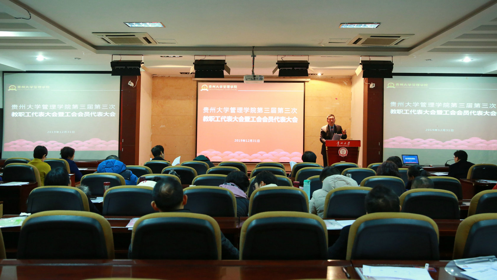 2019年12月31日中午,在管理学院三楼报告厅,顺利召开了万象城网页版第三届第三次教职工代表大会暨工会会员代表大会,大会由学院周莉莉副院长主持。