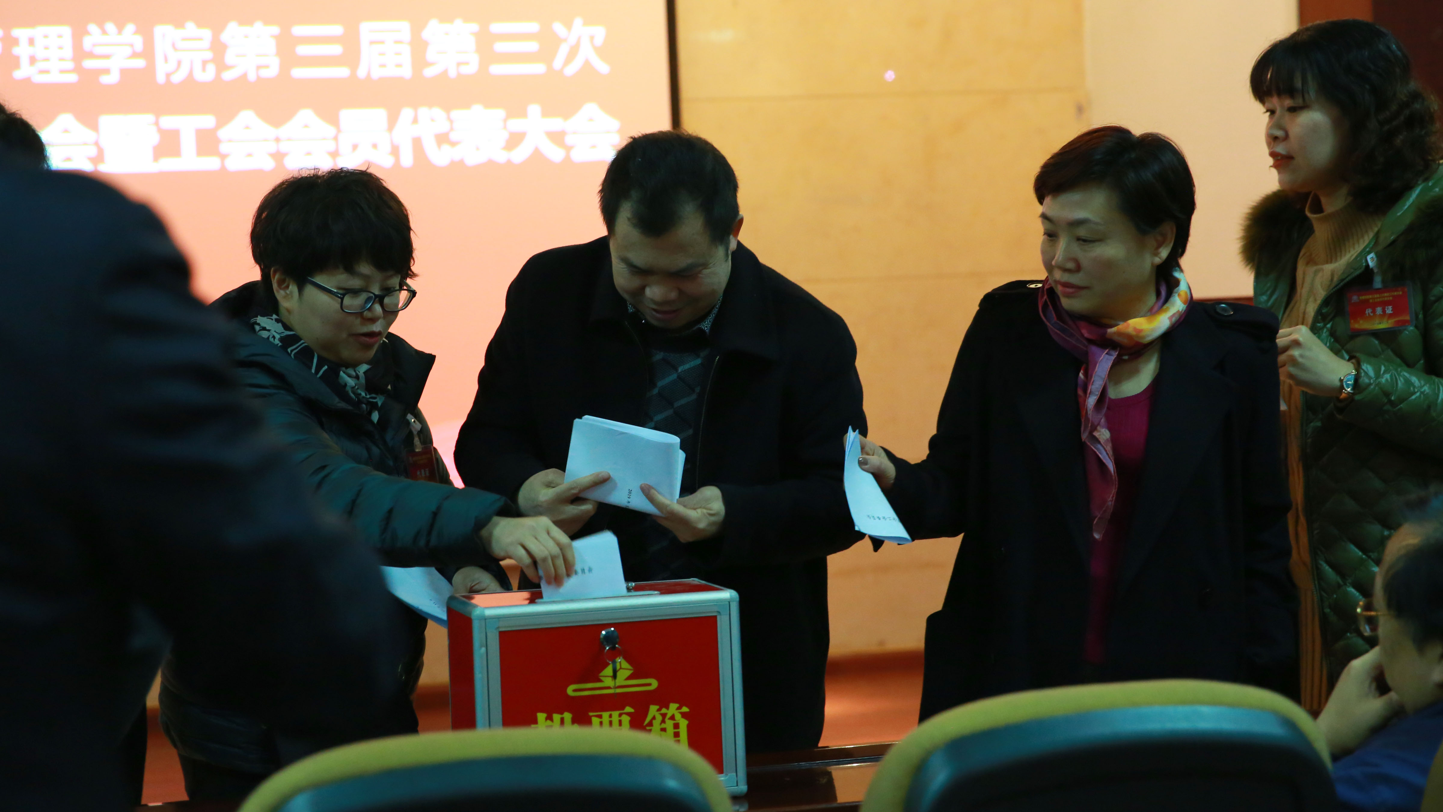 最后,大会民主选举新一届管理学院分工会委员会委员,大会代表应到52人,实到50人,大会通过代表们无记名差额投票,选举出:王秀峰、王军、芮丽华、李静、陈健、徐兰、蔡兰等7名教师组成新一届管理学院分工会委员会。