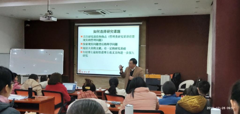 2019年12月26日上午9:30,万象城网页版邀请了天津大学管理与经济学部何桢教授,在管理学院102报告厅为我院教师进行申报2020年度国家基金的辅。,辅导活动由王婷副院长主持,管理学院部分教师和全体博士生、研究生同学参加本次辅导活动。