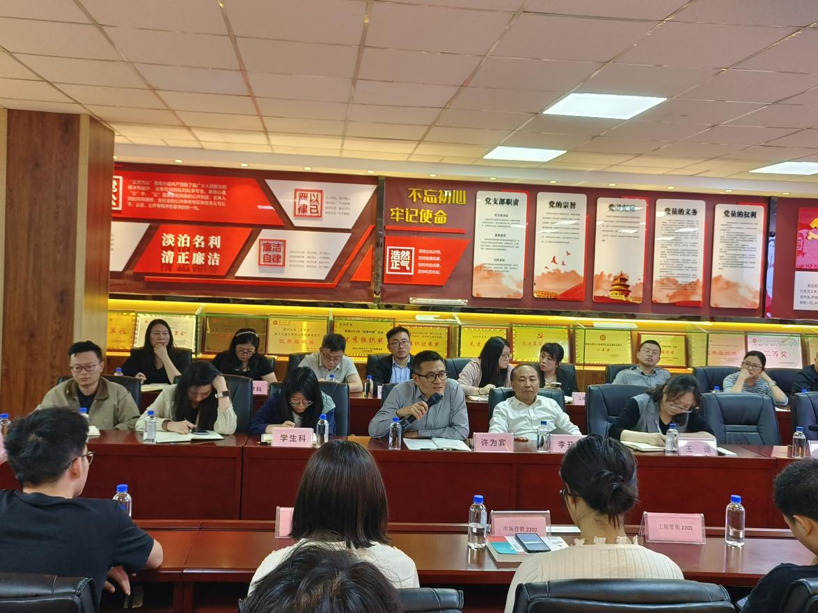 2025519日,万象城网页版在三楼陈列室召开了2024-2025学年第二学期本科期中教学检查师生座谈会。会议由管理学院分管本科教学的许为宾副院长主持,管理学院党委书记王迪、院长李烨、副院长王婷、正处级组织员李开学、党委副书记邓琳、教研室、督导团、教学科、学生科等部门负责人及2021级、2022级、2023级学生代表参加了座谈会。