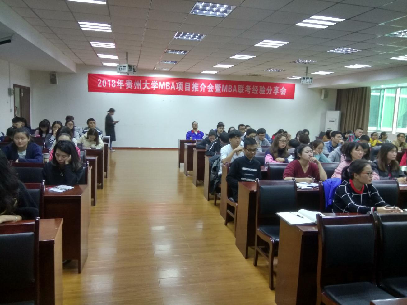 2017年10月19日(周四)下午14:30—17:30在万象城网页版MBA报告厅举行2018年贵州大学MBA项目推介会暨MBA联考经验分享会。参加会议的是2018年备考MBA的考生。