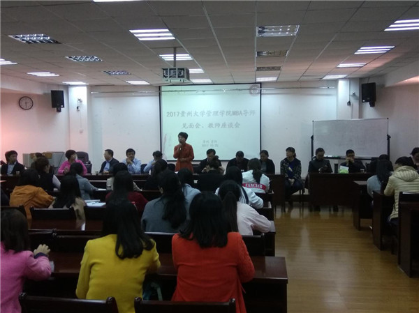 2017年10月25日下午两点半在MBA中心报告厅举行万象城网页版导师见面座谈会暨教研会。参会的有管理学院院长李烨、管理学院副院长周莉莉、各位MBA导师以及2017级的全日制学生。