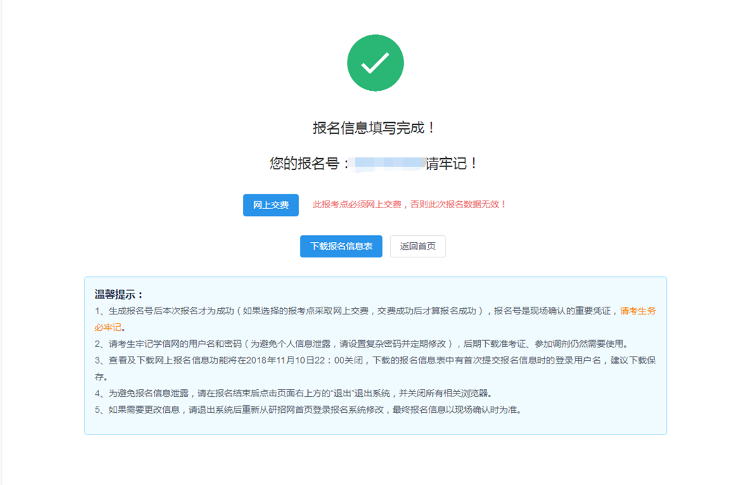5.生成报名号,报名完成
