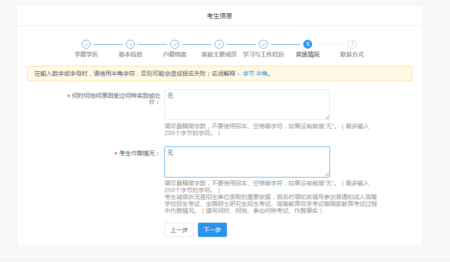 第六步:填写奖惩情况