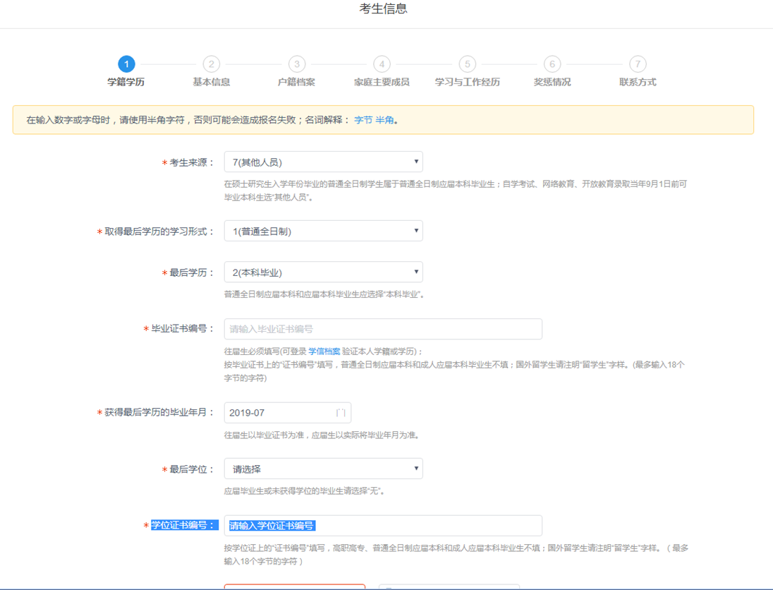 第一步:填写学籍学历