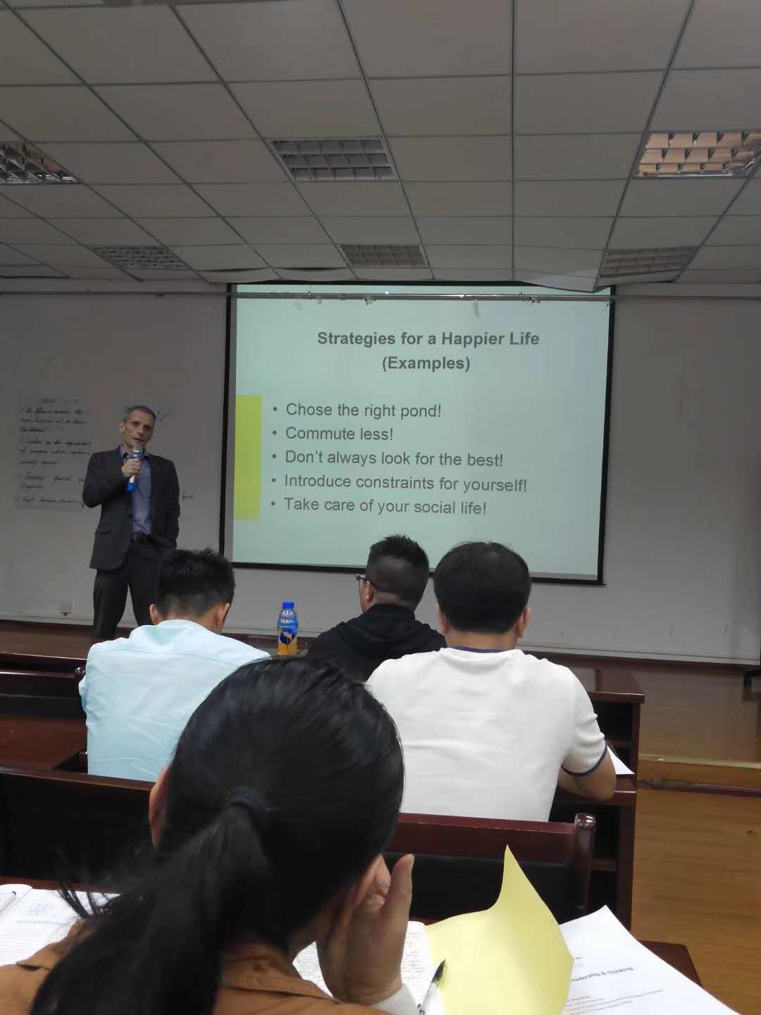 第二部分是5月29日下午-31日上午由Mathias Binswanger教授给同学带来的战略思维部分。Mathias Binswanger教授给大家分享了战略思考的目标和宗旨;战略思维的演变;在不确定的环境中做出选择的艺术;比较优势的概念以及如何应用它;博弈论的一些基本思想;过去,现在和未来可能的经济趋势等丰富多彩的内容。