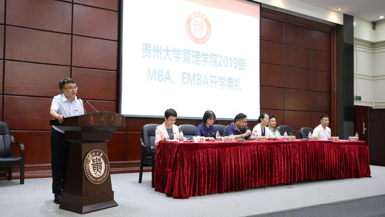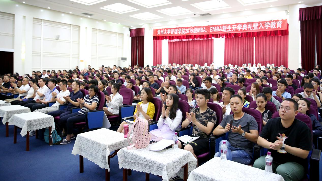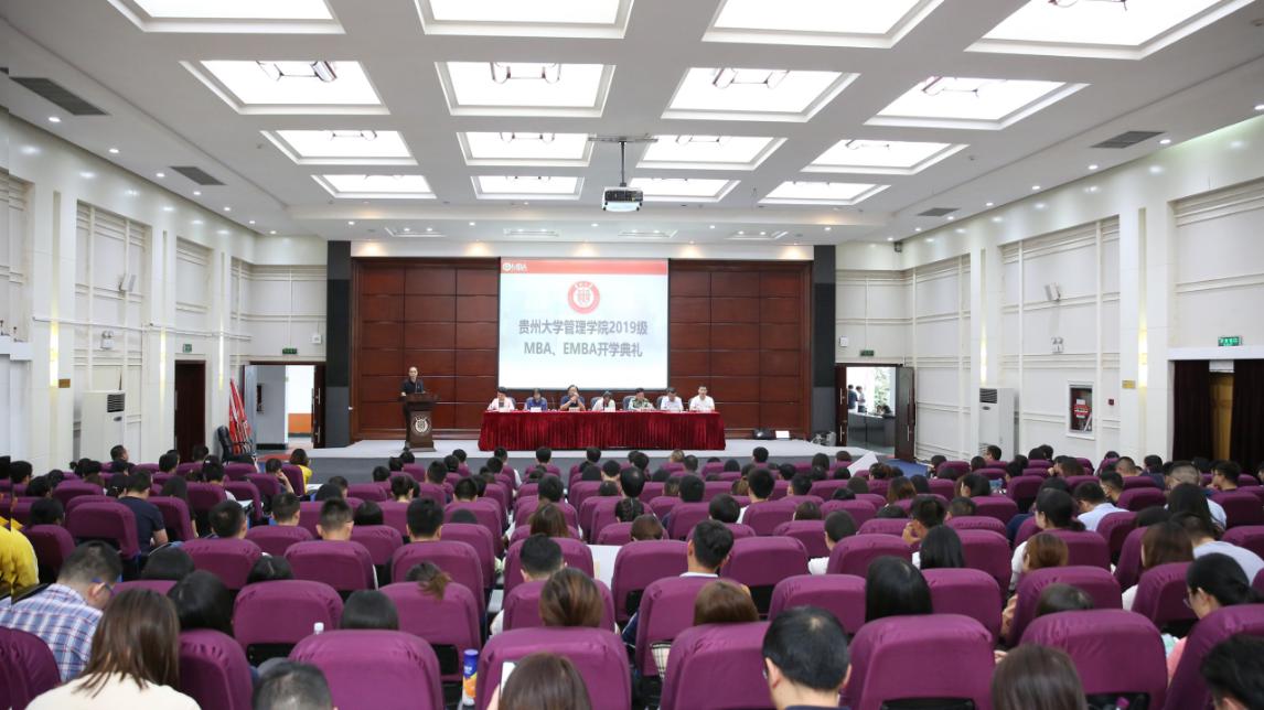 2019年9月16日上午,万象城网页版MBA中心在行政楼一楼报告厅隆重的举办了“2019万象城网页版MBA&EMBA开学典礼”。贵州大学研究生院院长杜滨教授、贵州大学研究生工作部部长罗勇副教授、万象城网页版党委书记王秀峰教授、万象城网页版院长李烨教授、万象城网页版副院长王婷教授、万象城网页版副院长周莉莉教授、万象城网页版副书记张亚军老师、万象城网页版MBA导师代表许为宾教授、各班班主任老师以及MBA和EMBA全体工作人员、300余名MBA新生和50余名EMBA新生参加了此次开学典礼。