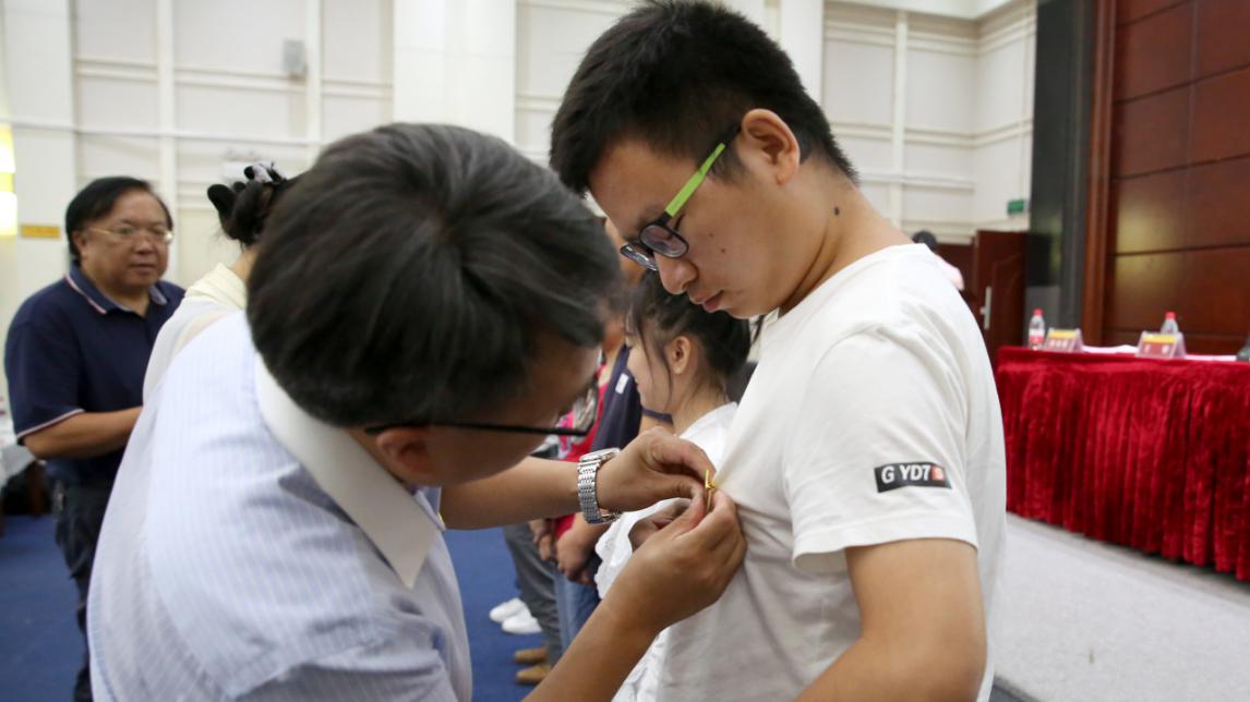 随后在场领导为各班学生代表佩戴了校徽,王秀峰教授郑重的将班旗授予了各个班级,这象征着MBA同学正式融入贵大这个大家庭,翻开了新的求学篇章