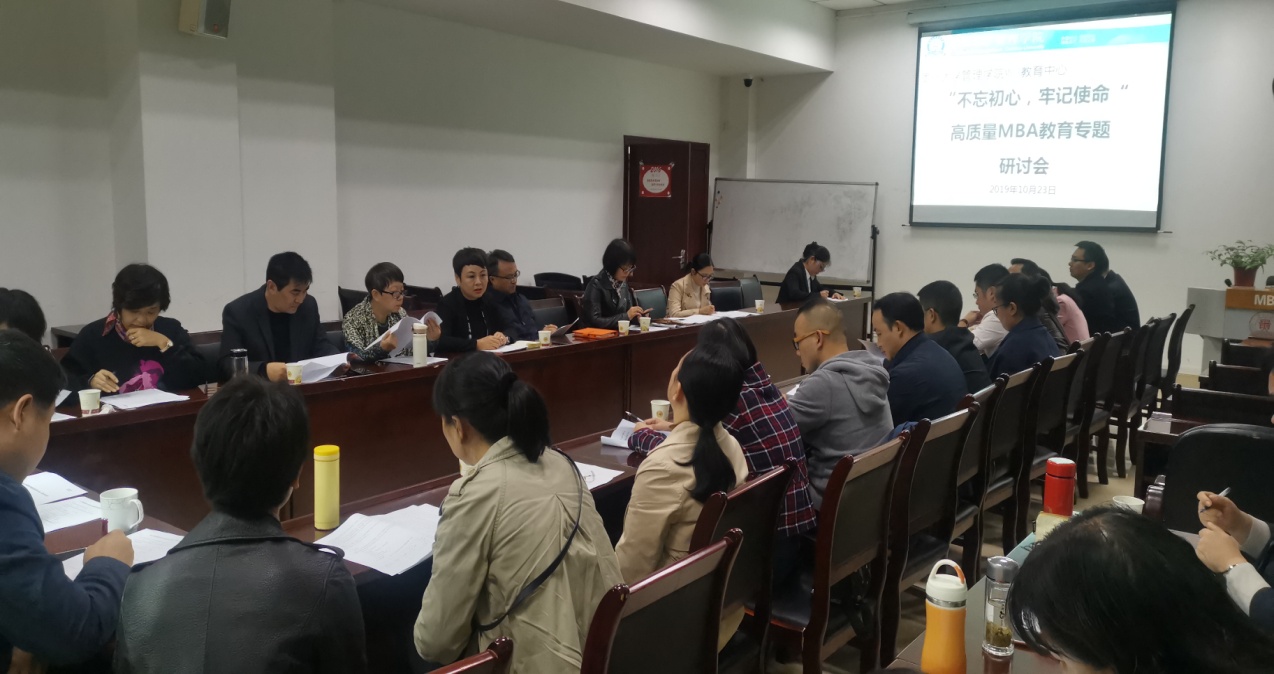 2019年10月23日,贵大管院MBA教育中心在201教室举行“不忘初心,牢记使命”高质量MBA教育专题研讨会。管理学院院长李烨教授、副院长王婷教授、副院长周莉莉教授出席了会议,MBA教育中心主任项凯标,副教授、副主任何跃勇及中心任课教师共30余人参加了会议。本次会议由副院长周莉莉主持。