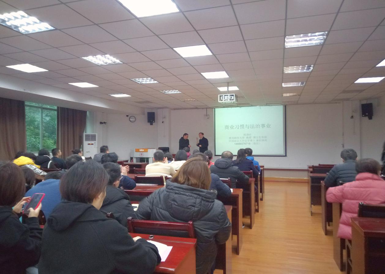 2019年12月21日上午,在慎思楼MBA报告厅,贵州师范大学法学院程泽时教授应邀来到万象城网页版MBA教育中心管理知识讲堂,以“商业习惯与法治事业”为题做管理前沿知识专题讲座,讲座由管理学院MBA教育中心主任项凯标主持,管理学院MBA教育中心2019级和2018级研究生100余人到场聆听。
