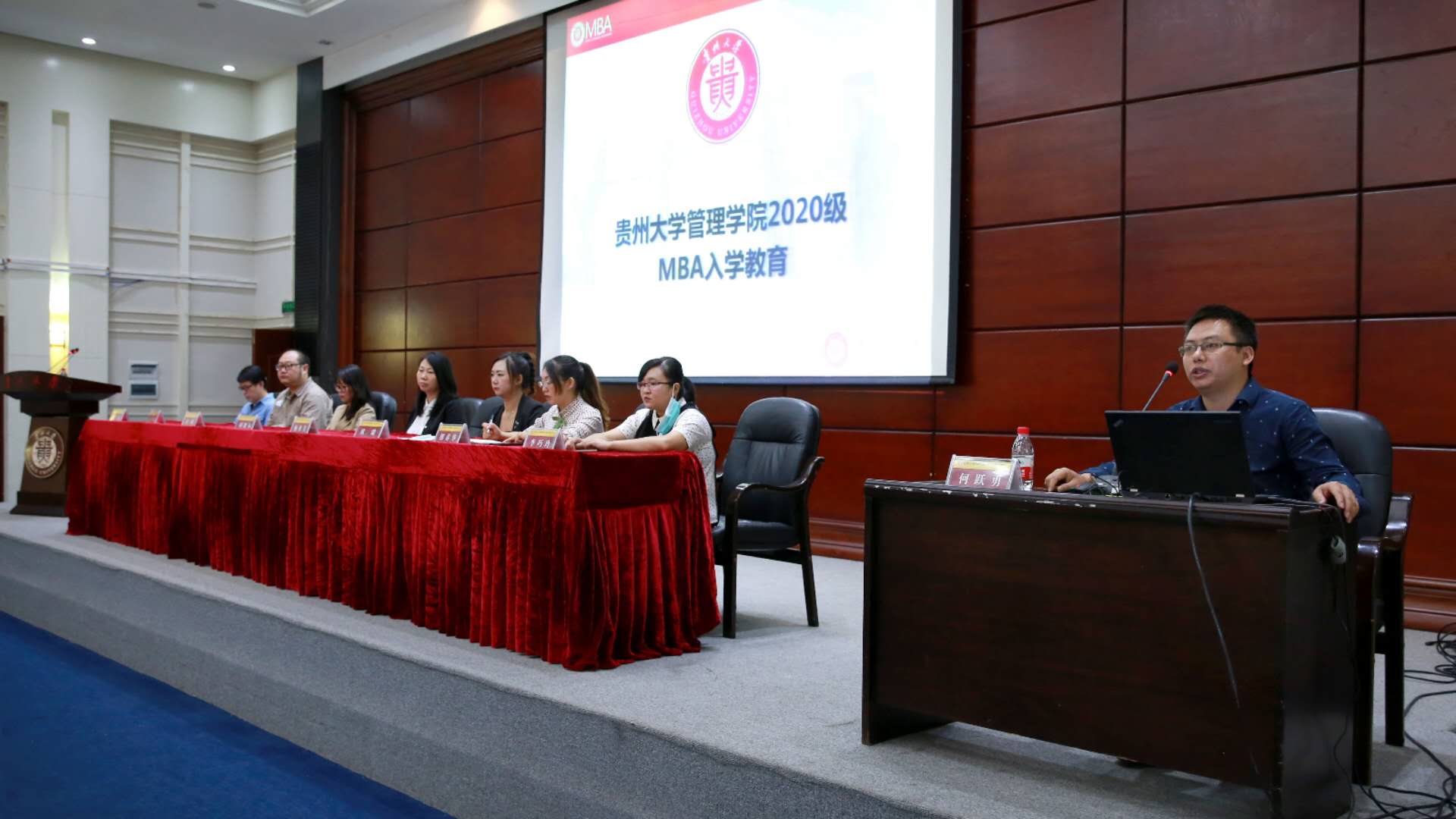 贵州大学研究生院院长杜滨教授、万象城网页版党委书记王秀峰教授、万象城网页版院长李烨教授、万象城网页版副院长王婷教授、万象城网页版副院长宋山梅教授、万象城网页版副院长周莉莉教授、贵州大学管理学院MBA导师代表张莉副教授、管理学院各科室及部门负责人、系主任,各班班主任老师以及MBA和EMBA全体工作人员、300余名MBA新生、100余名EMBA及管理学院全日制研究新生参加了此次开学典礼。
