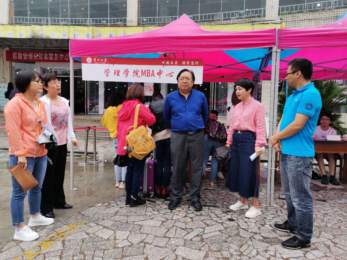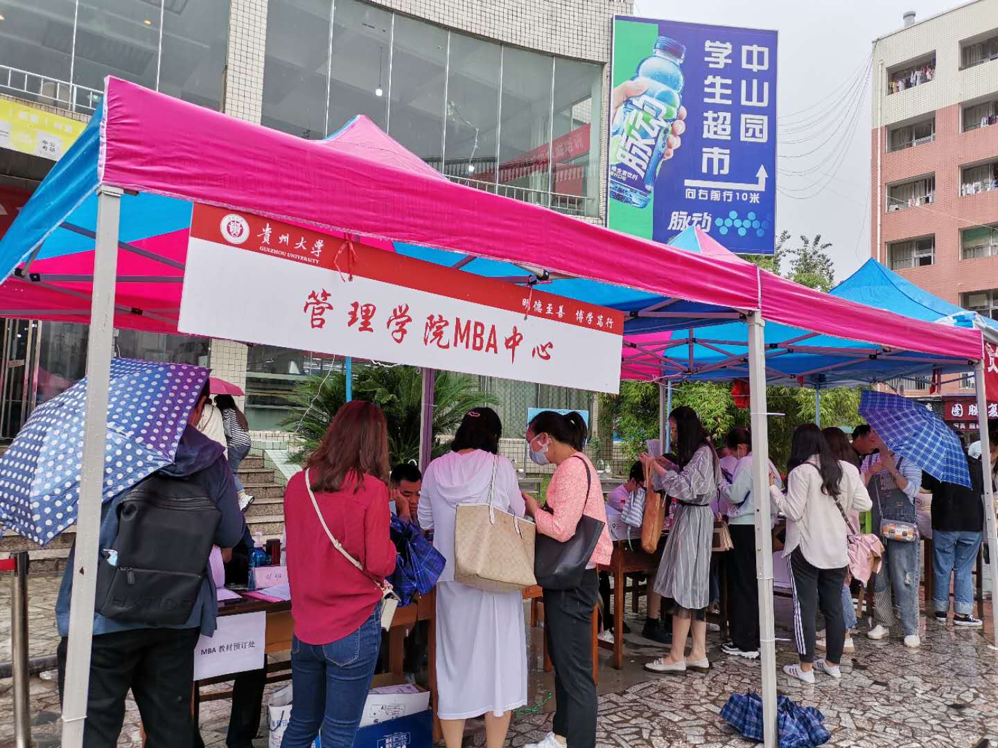 9月11日,万象城网页版MBA教育中心在贵州大学中山园组织了新生迎接工作。天空一直飘雨,但丝毫没有影响新学员来校报到的热情,当天共迎接2020级MBA新学员300余名。