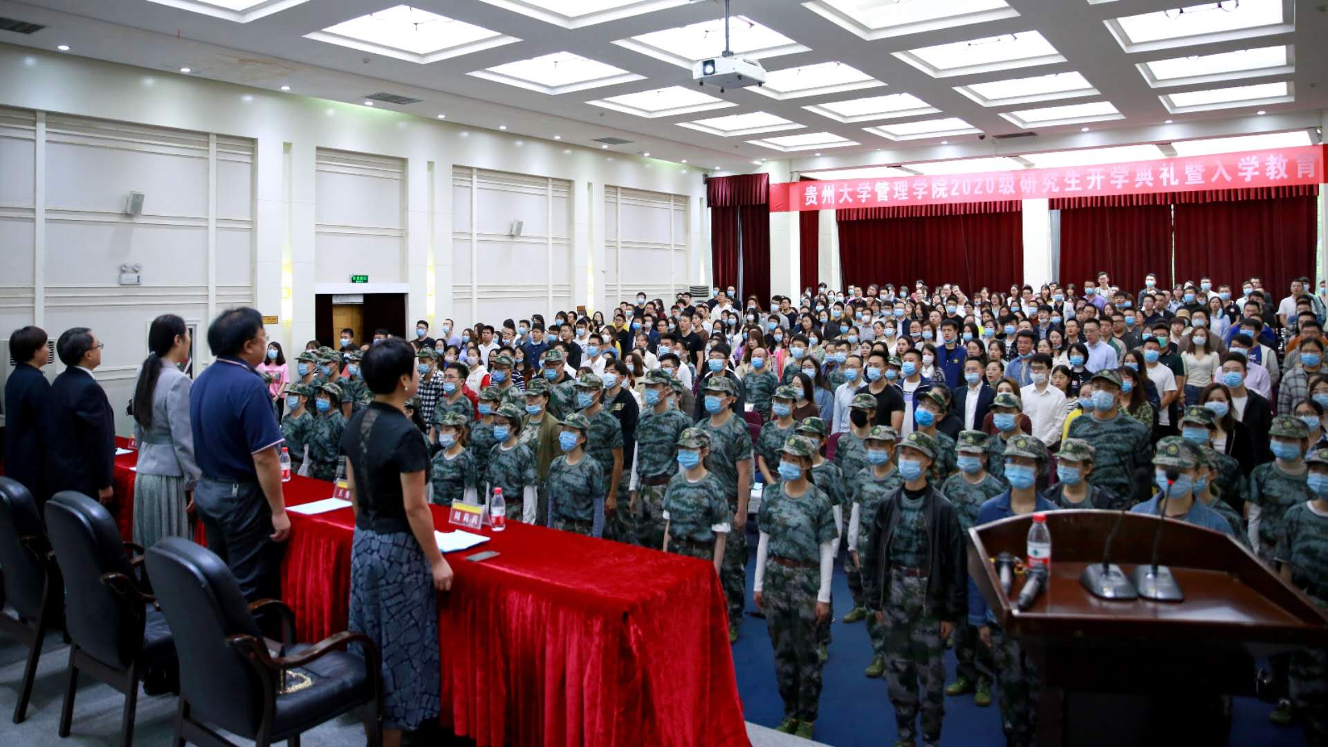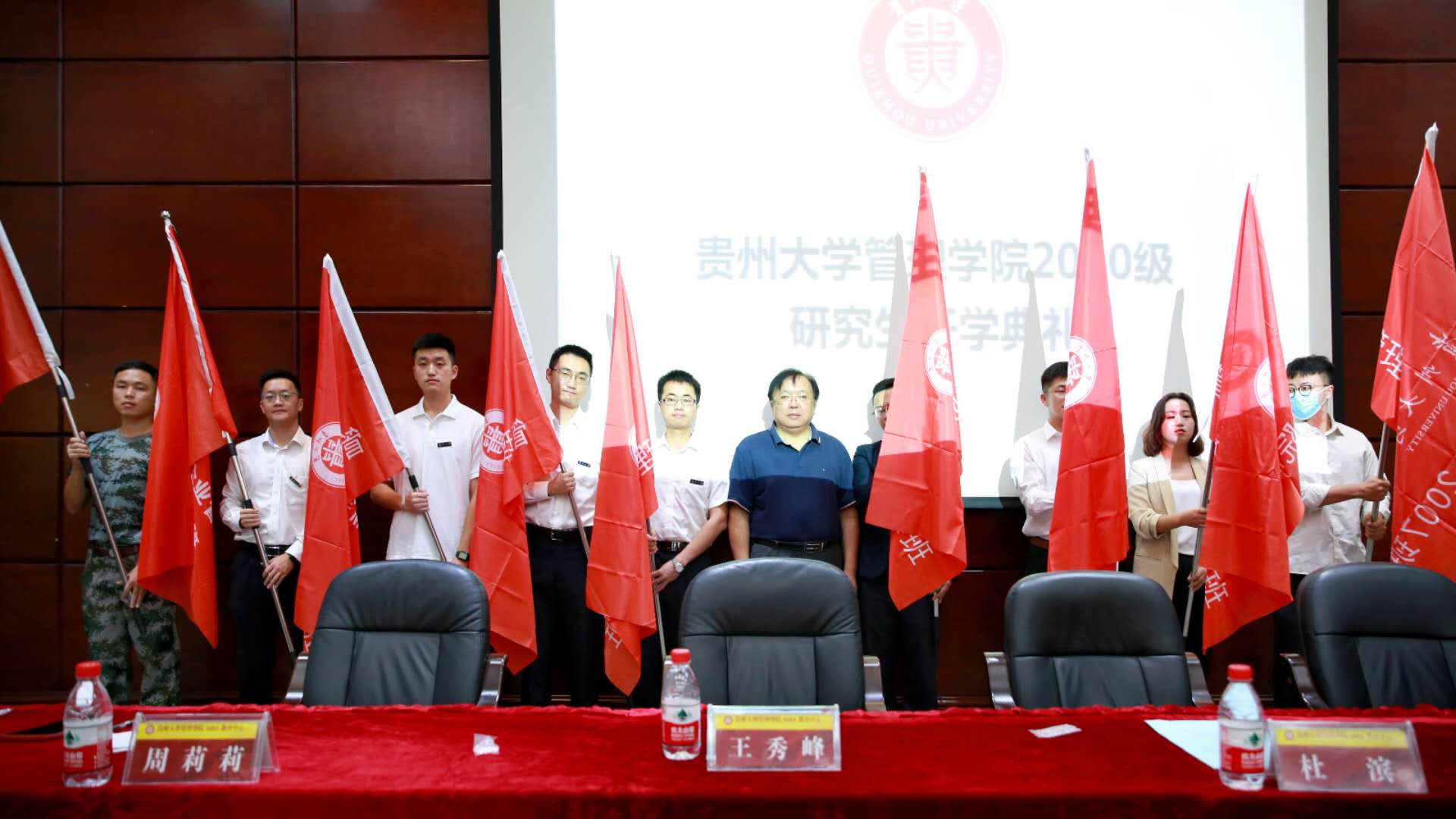 贵州大学研究生院院长杜滨教授、万象城网页版党委书记王秀峰教授、万象城网页版院长李烨教授、万象城网页版副院长王婷教授、万象城网页版副院长宋山梅教授、万象城网页版副院长周莉莉教授、贵州大学管理学院MBA导师代表张莉副教授、管理学院各科室及部门负责人、系主任,各班班主任老师以及MBA和EMBA全体工作人员、300余名MBA新生、100余名EMBA及管理学院全日制研究新生参加了此次开学典礼。