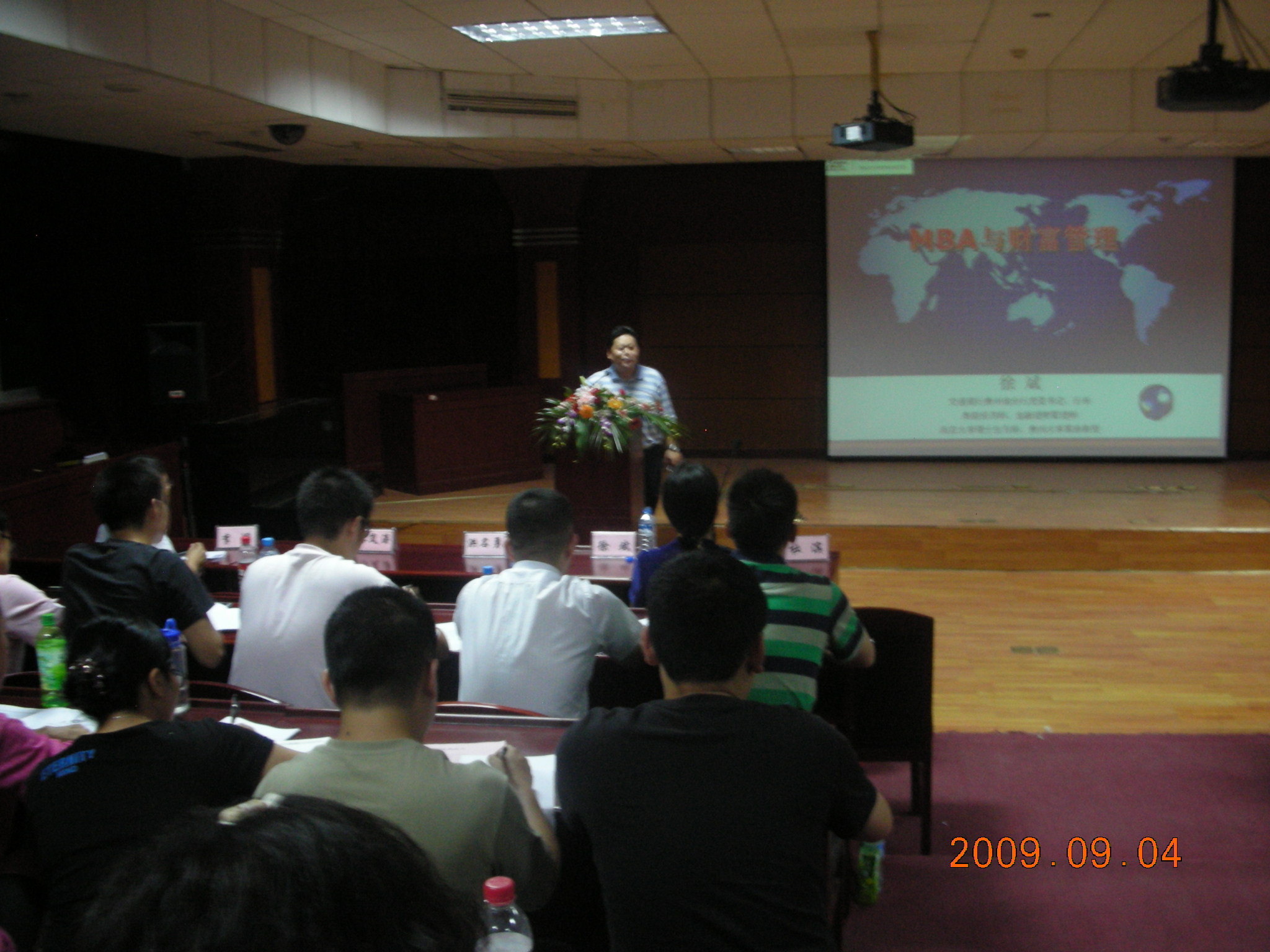 2009年9月3号09秋季MBA学员到校报到注册,9月4号下午部分学员参观了贵州大学校史馆,9月4日晚在贵州大学花溪北校区模拟法庭进行入学教育。万象城网页版院长杜滨教授、MBA教育中心全体工作人员和09秋季MBA班的2名班主任出席09秋季MBA入学教育仪式。在入学教育仪式上,MBA教育中心主任李烨博士为一百五十余名09级秋季MBA学员介绍了贵州大学MBA教育项目的发展沿革、下一步发展思路和MBA培养流程及相关要求,并殷切希望大家协调好学习与工作、学习与家庭的关系,和谐学习、愉快学习,早日完成学业。